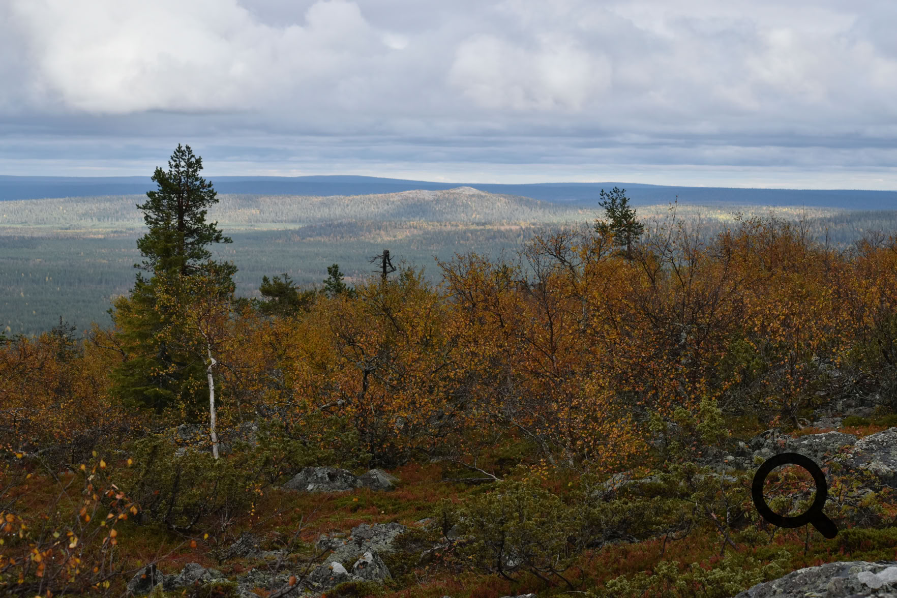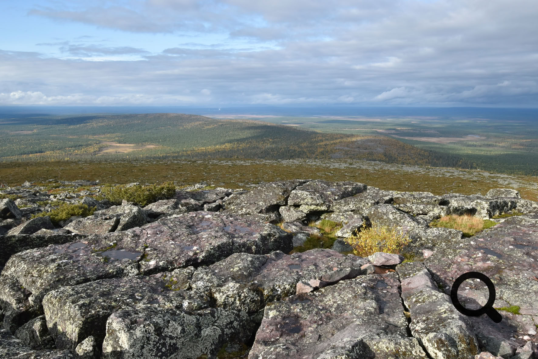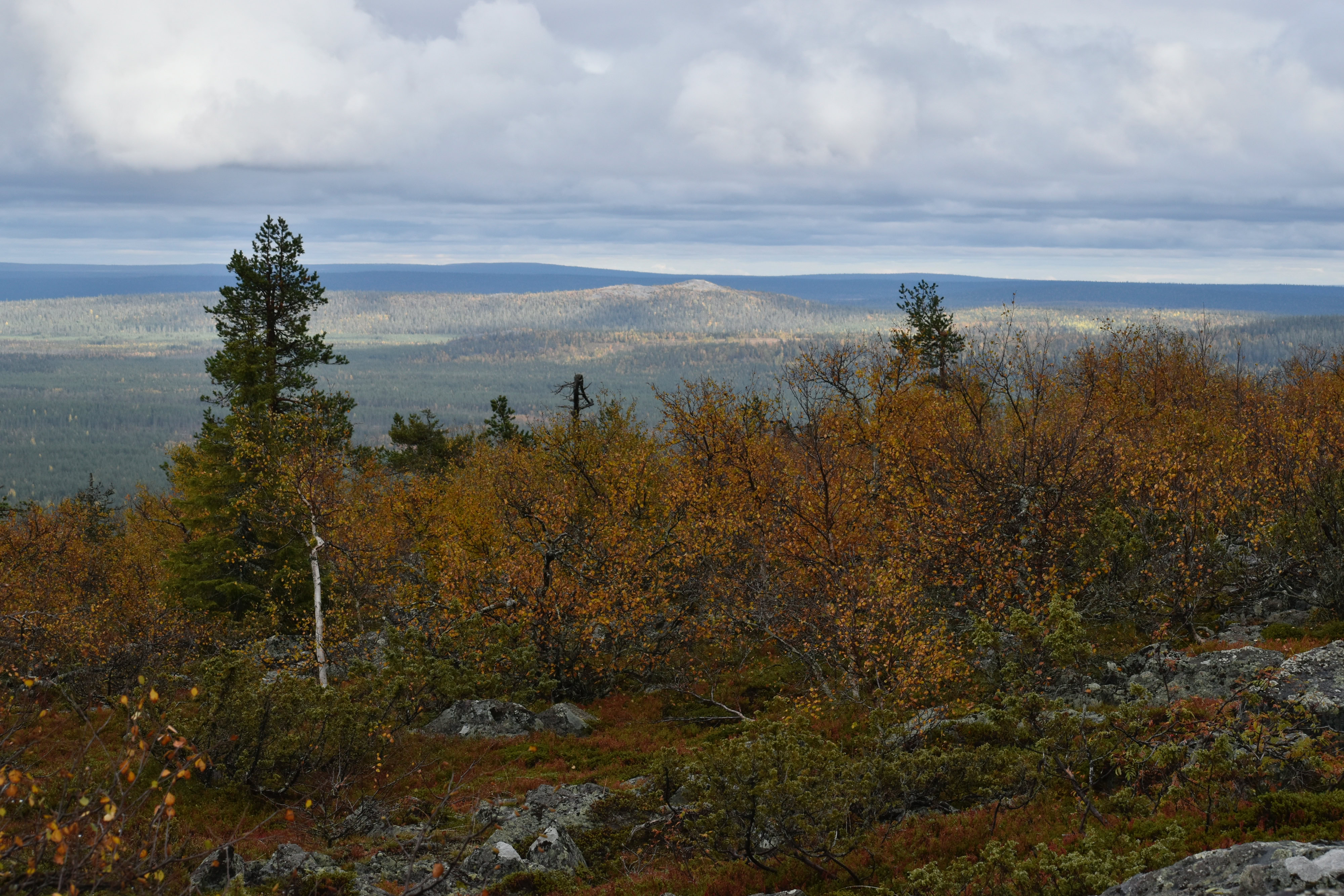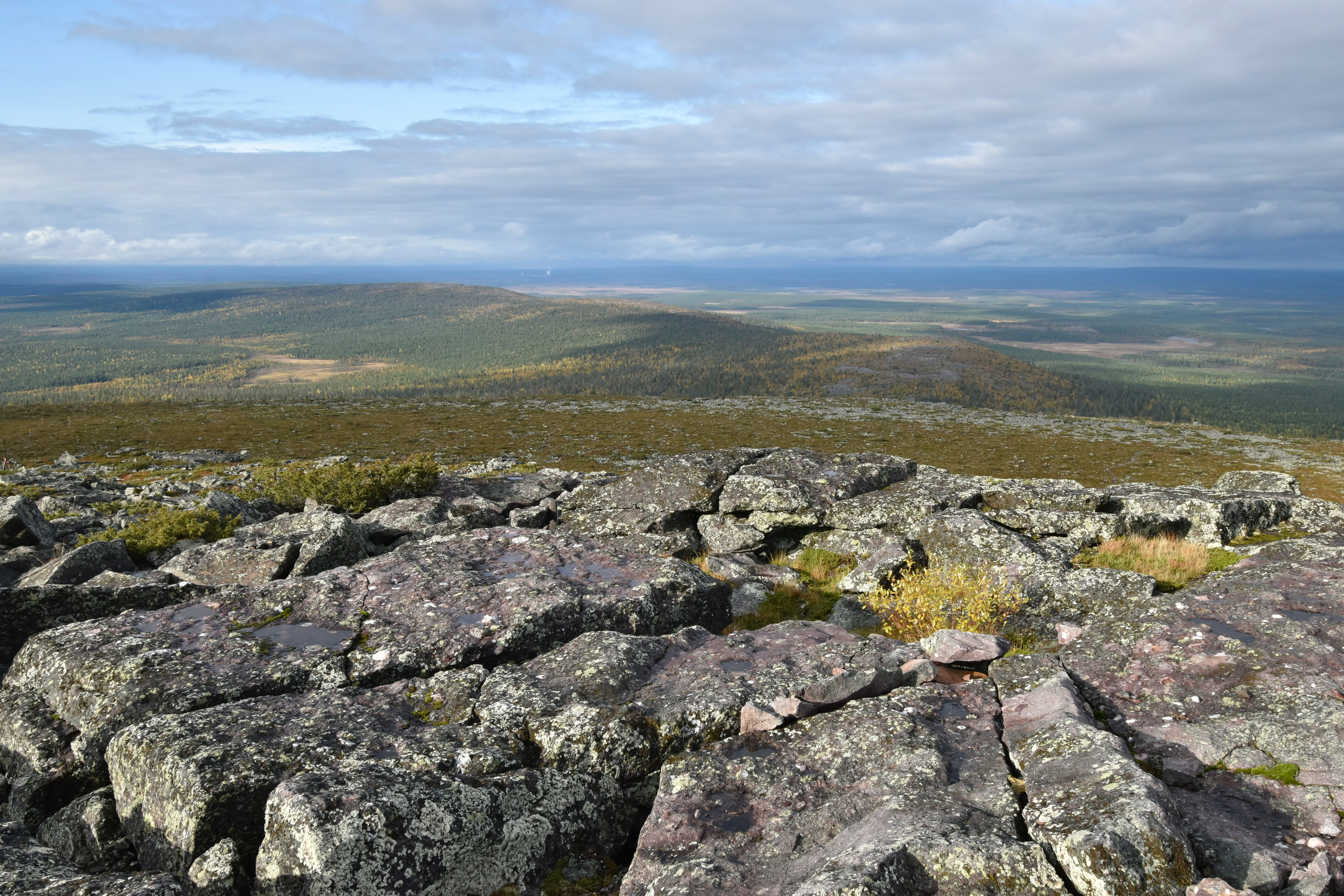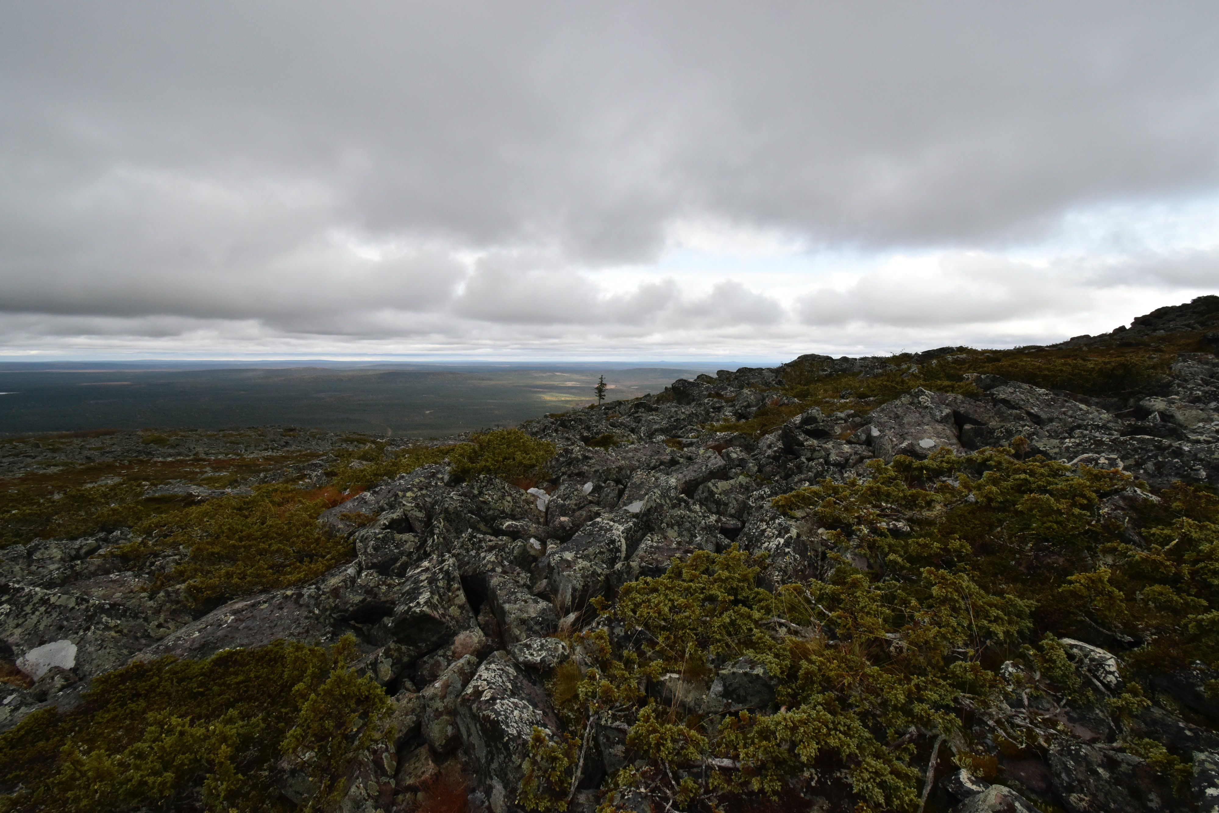 Maisema alkoi tässä kohdassa toden teolla avartua; etenkin nousemamme pohjoisrinteen puolella. Räpäslaki alkoi näyttää alhaalla päin jo kovin paljon pienemmältä ja matalammalta, kuin tämä hieno ”mini-Saana”.