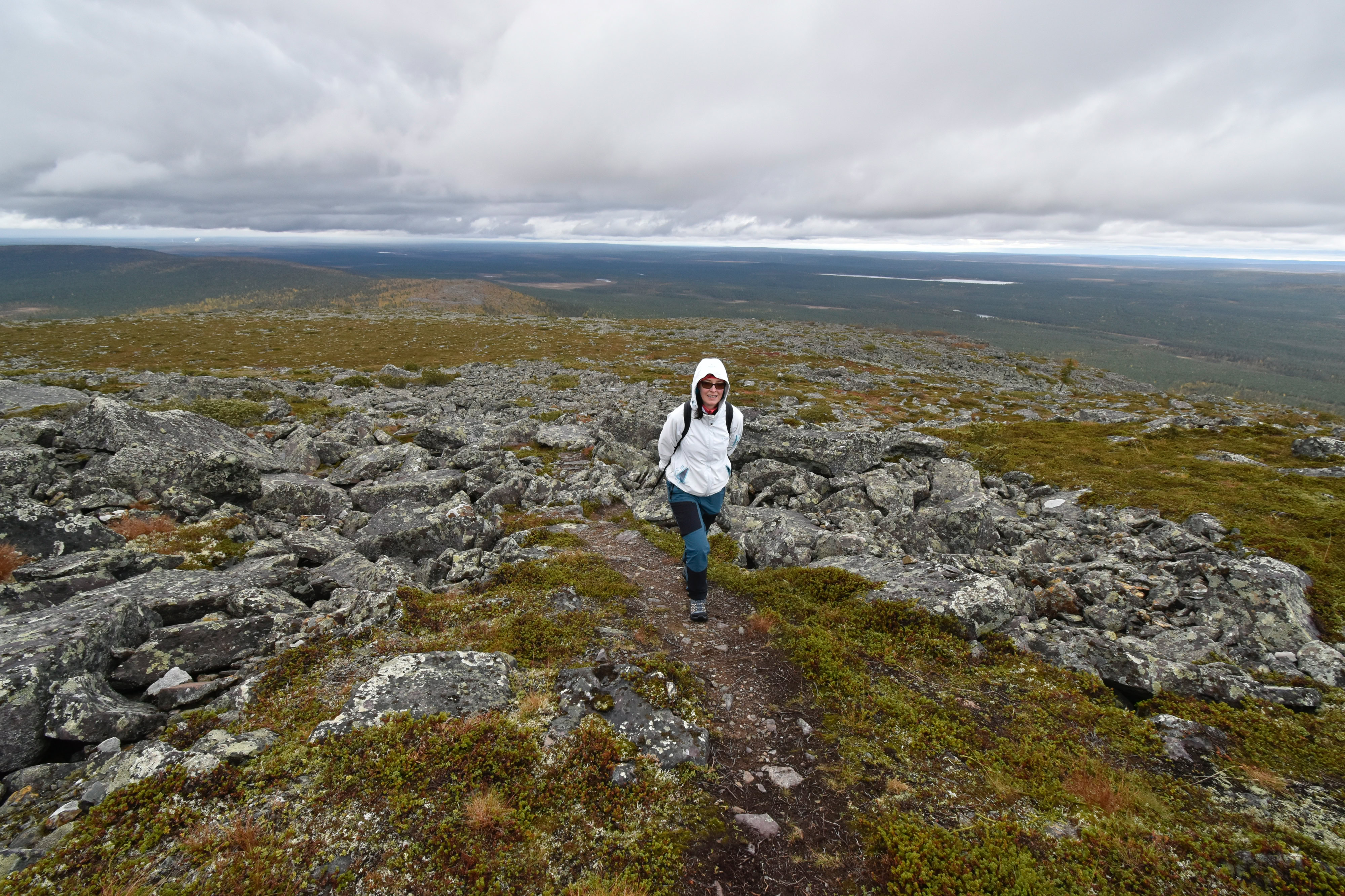 Pikkuhiljaa puusto ympärillämme alkoi harvenemaan ja maisema hetki hetkeltä avautumaan. Räpäslaki, jonka juurella olimme Palkaskurussa äsken olleet, alkoi näkyä pohjoisessa todella ihanasti. Pian olimme jo sen huipun tasolla.
