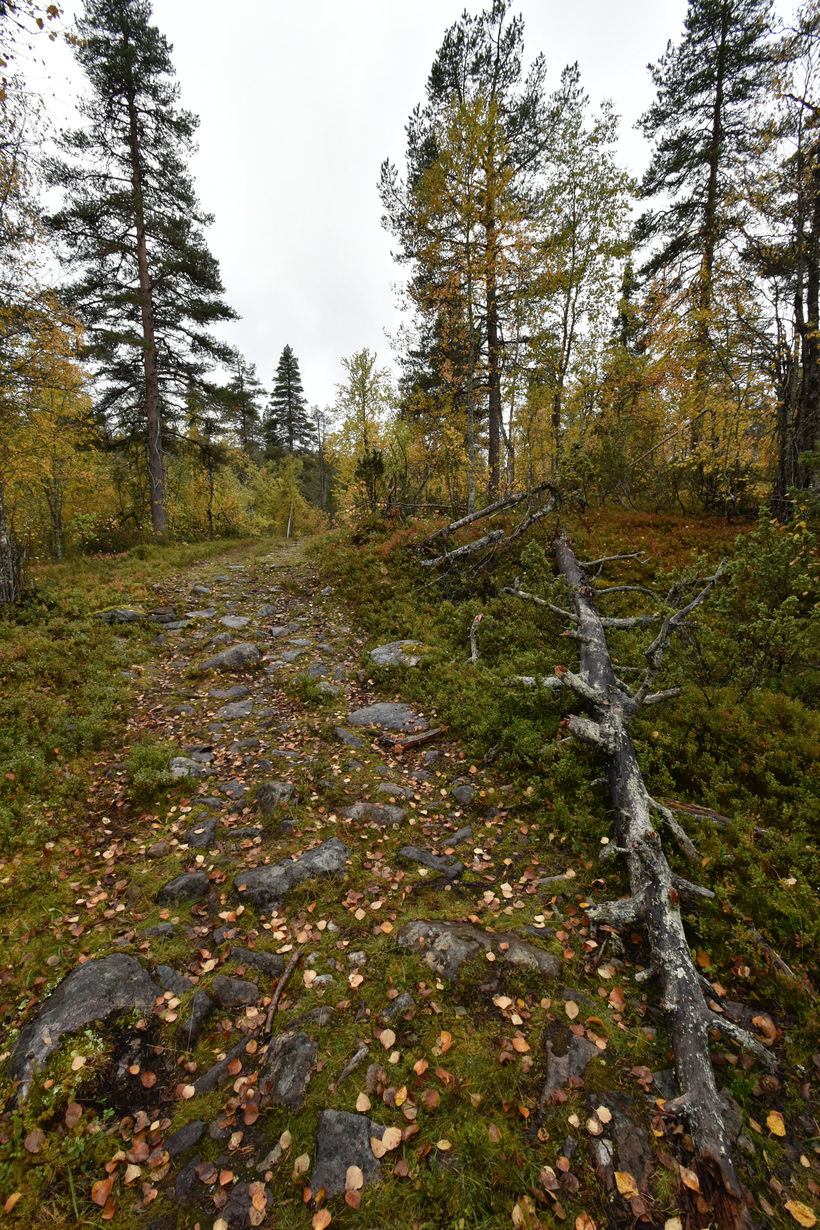 Polku alkoi nousta jyrkemmin lähestyessämme Palkaskurua. Lähempänä kurua se muuttui hauskan näköiseksi kivien täplittämäksi tieksi.