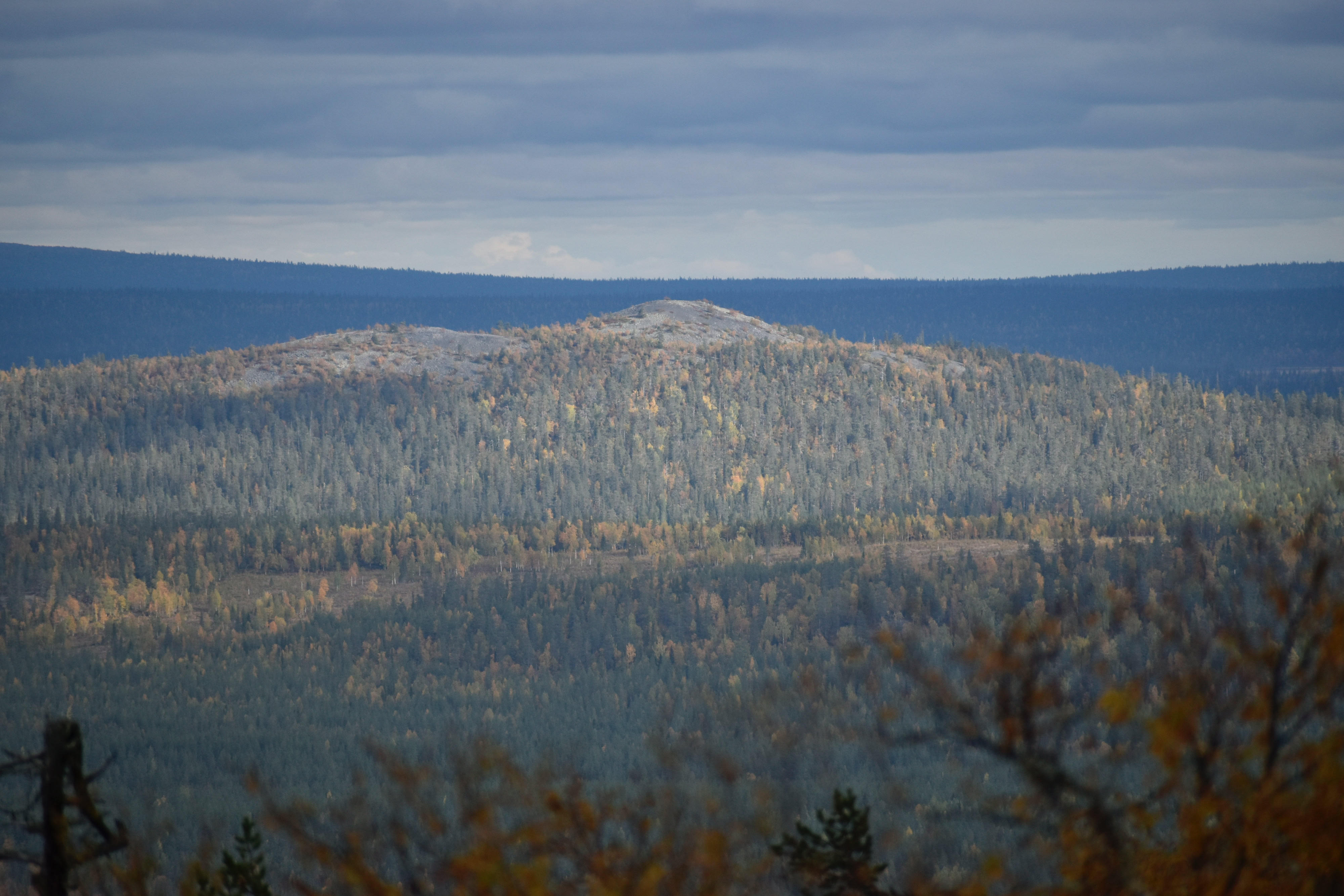 Kuvaillessani siinä, huomioni kiinnitti auringon valokeilassa idässä päin oleva ”matalahko”, mutta silti paljaslakinen huippu. Myöhemmin tunnistin tuon Porkonen- nimiseksi vaaraksi, jolla korkeutta on 405 metriä.