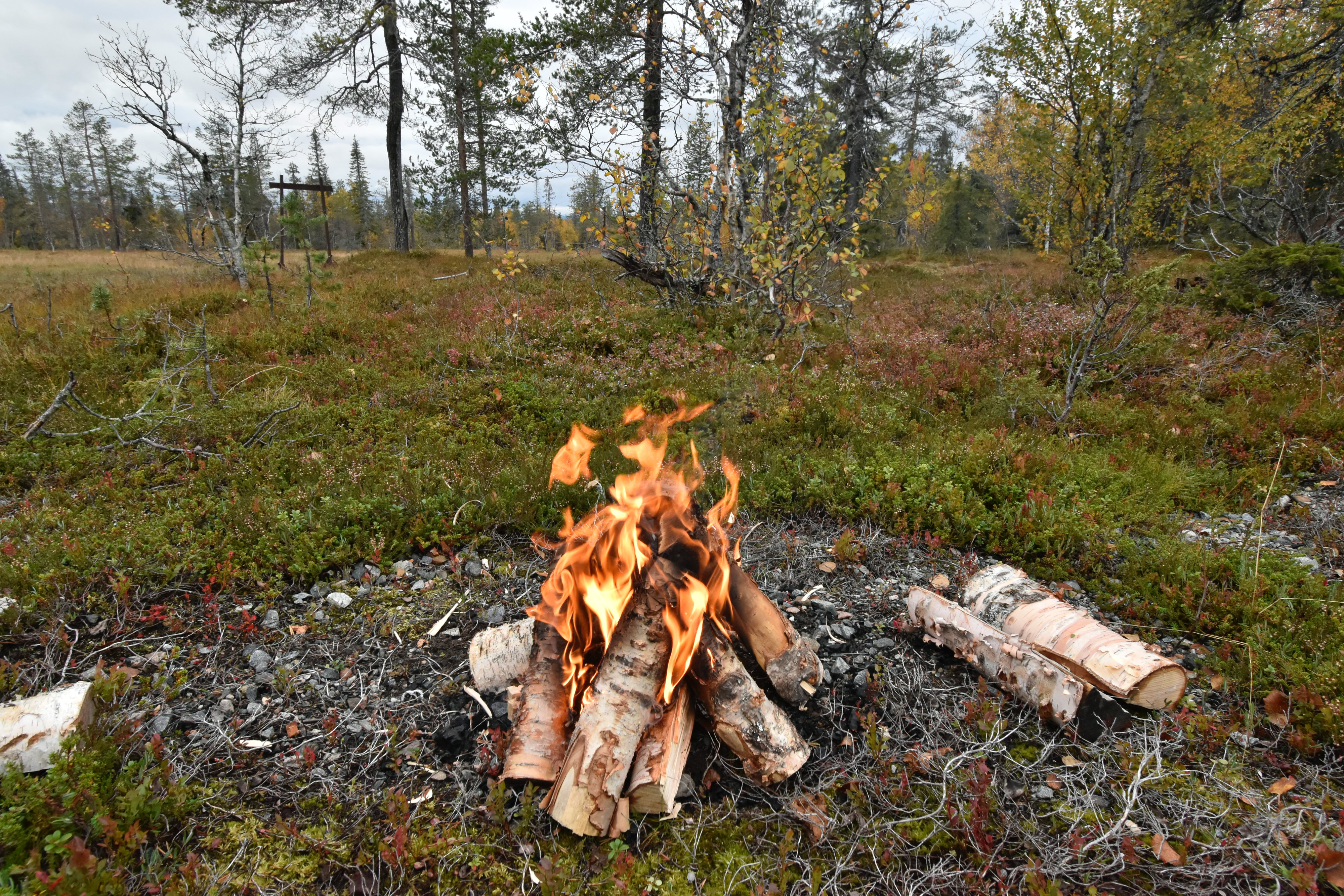 Paikka oli hyvin varustettu uuden oloisine käymälöineen ja kaikkineen. Me löysimme vanhan nuotionpohjan kodan ulkopuolelta, johon kosteiden päivien vuoksi uskalsimme tehdä tulen.