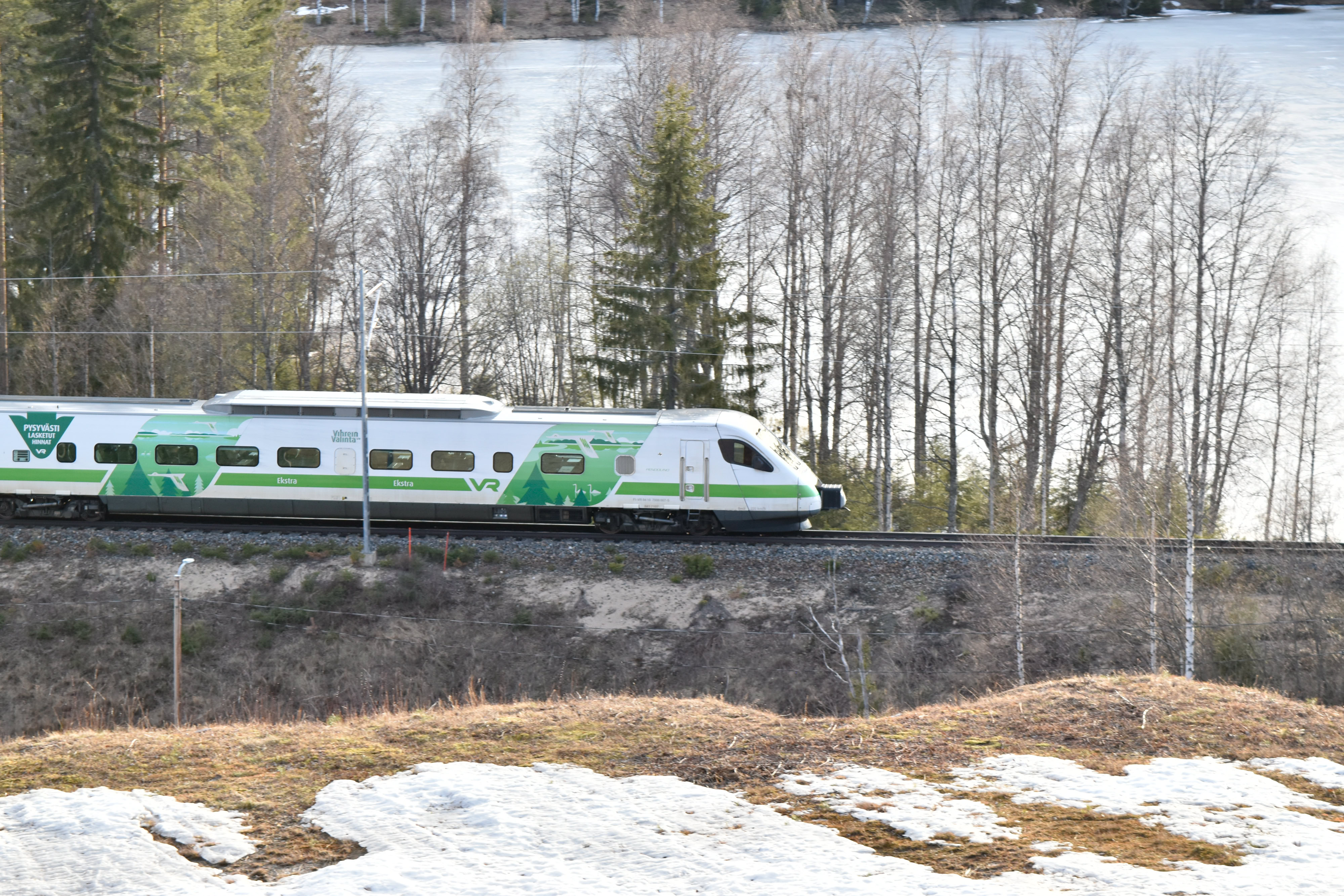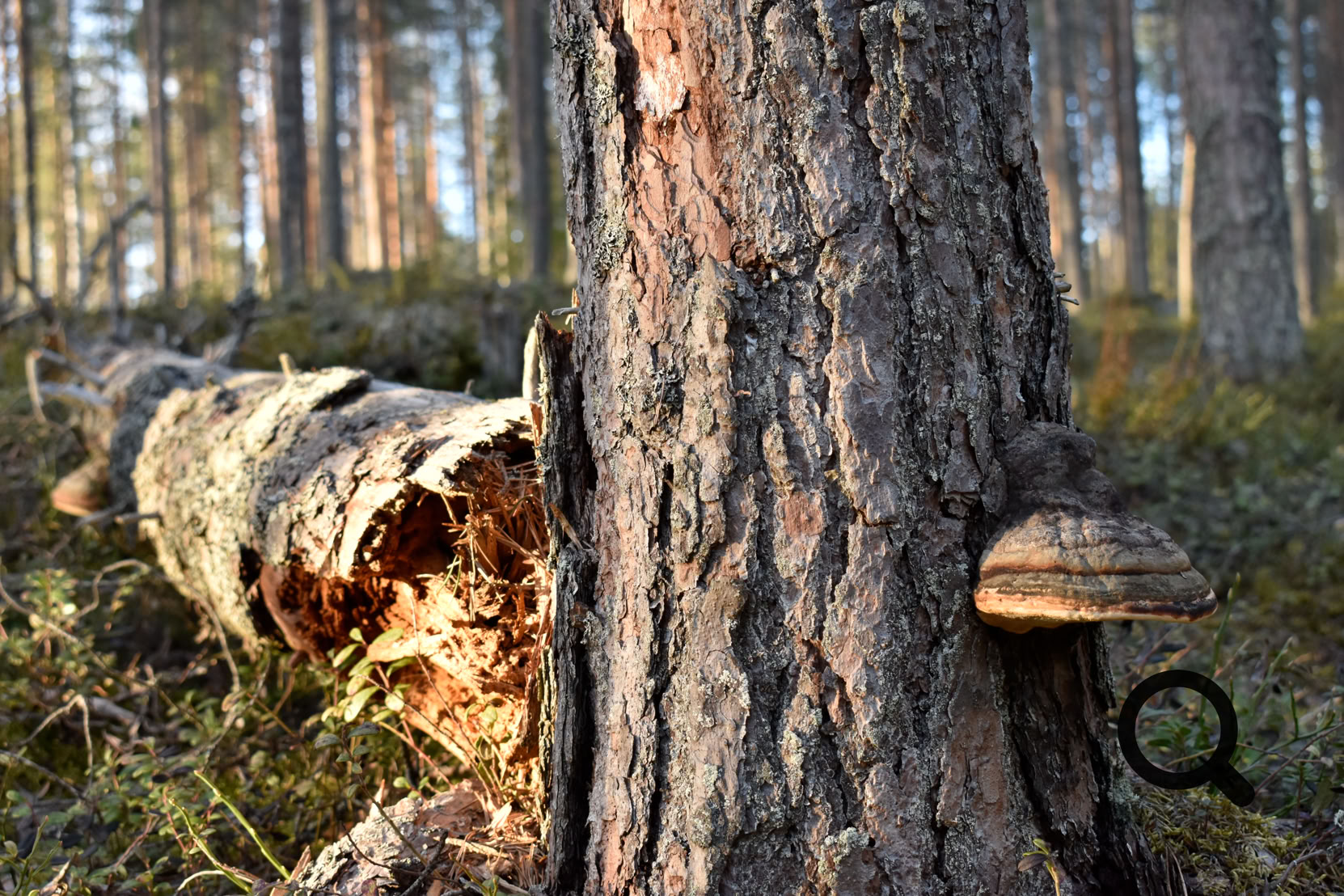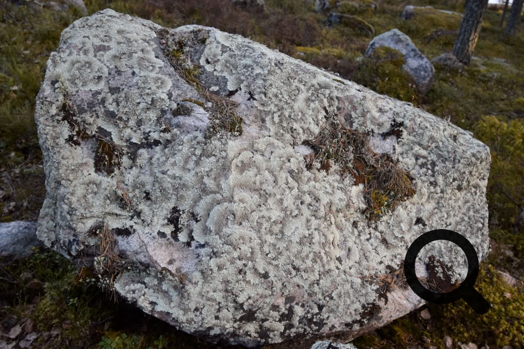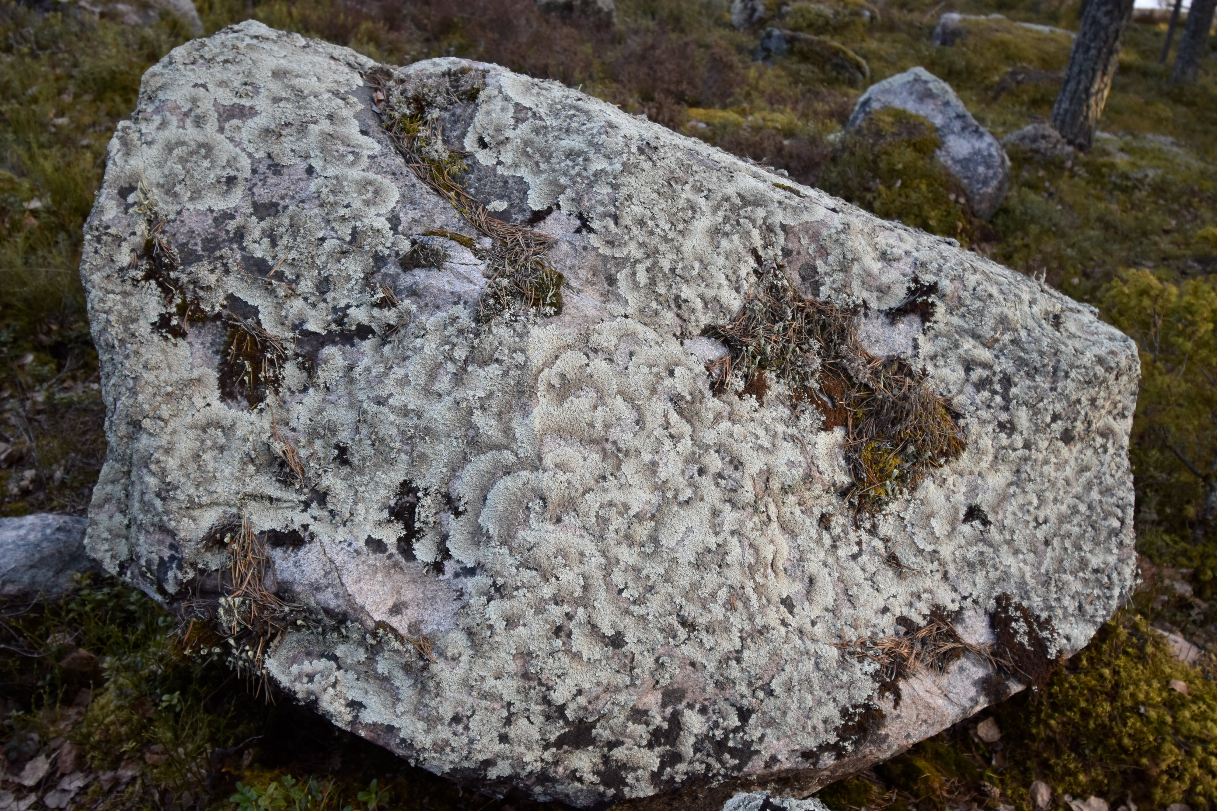 Alla myös haastava tilanne. Kirkas taivas ja tumma metsä, mutta myös taivaan valon ansiosta yksityiskohtia paljastava Vimpelinlammen jää. Ei mikään onnistunein yhtälö. Muita bongauksiani olivat myös Iisalmesta Kajaaniin saapuva juna, hauskasti jäkälöitynyt kivi ja kaatunut puu, jonka kannossa kääpä. Auringonlaskun valossa mukavan näköinen kohde. Oli siellä yksi harmahtava partainen ukkelikin…