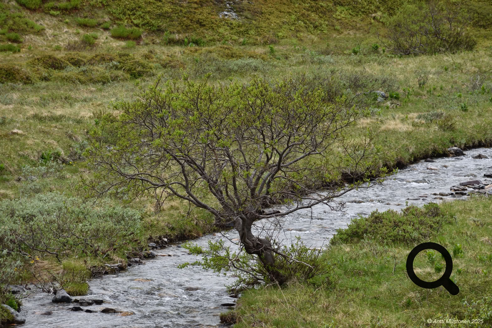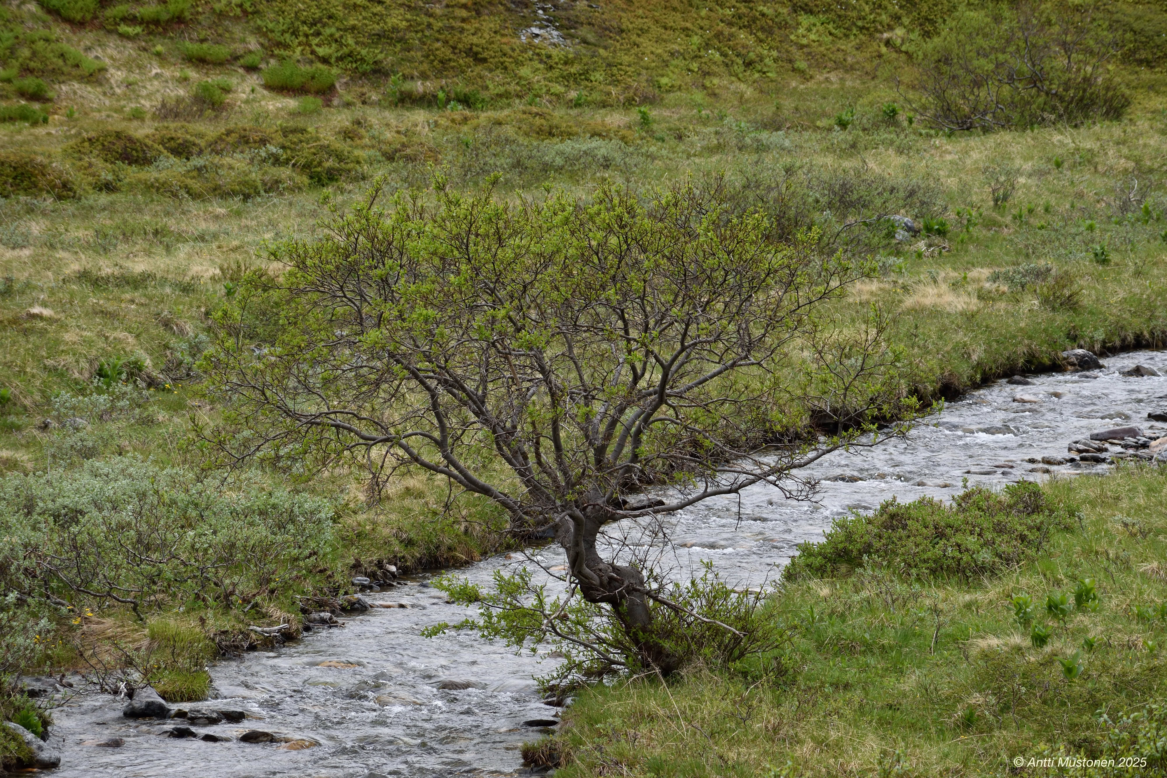 Siitä hieman ylempää kuvailin pienessä laaksossaan virtaavaa puroa, ja yksinäinen paju pääsi kohteekseni. Kuinkahan vanha lie?