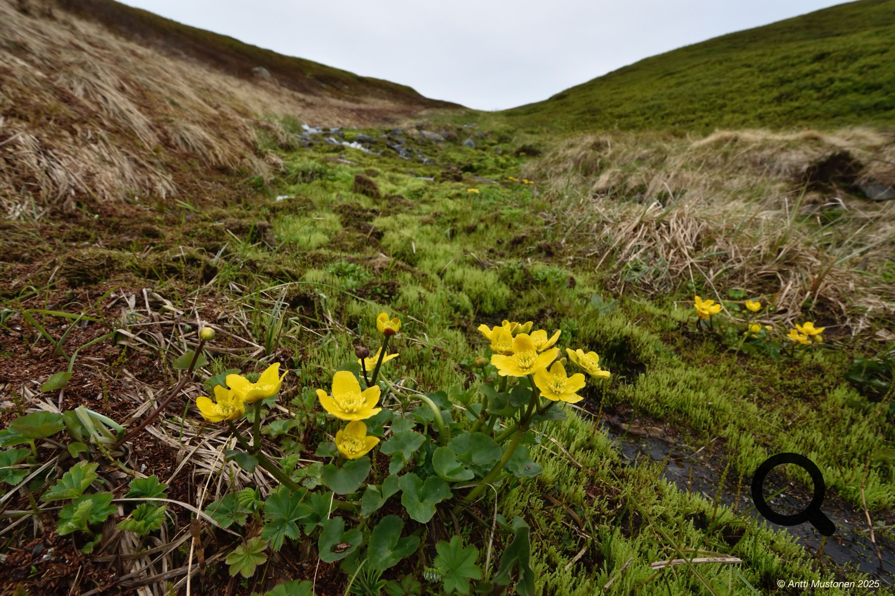 Huipulla kasvoi lapinvuokkoja, sekä ruusujuurta. Molemmat kukassa tuohon aikaan.
