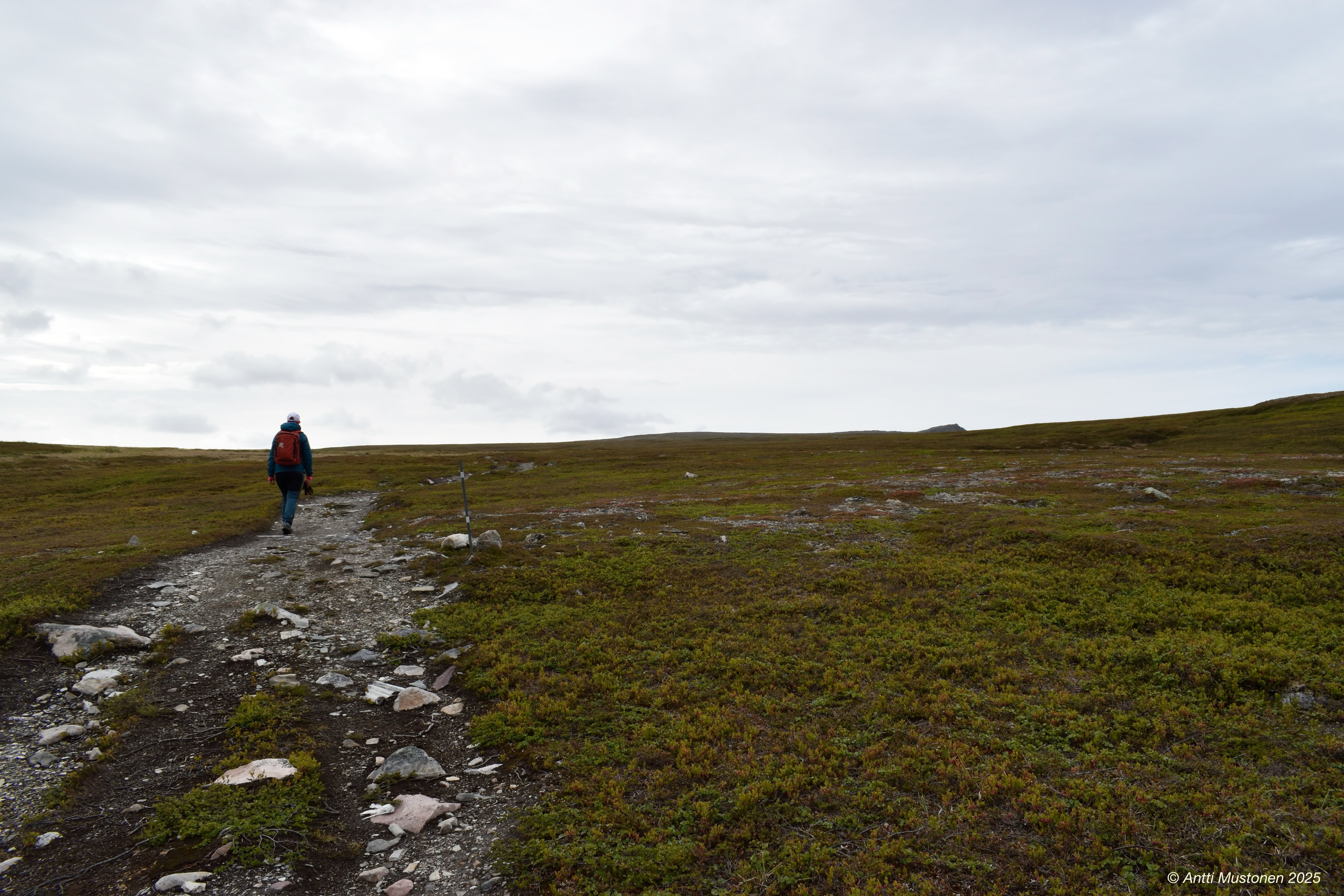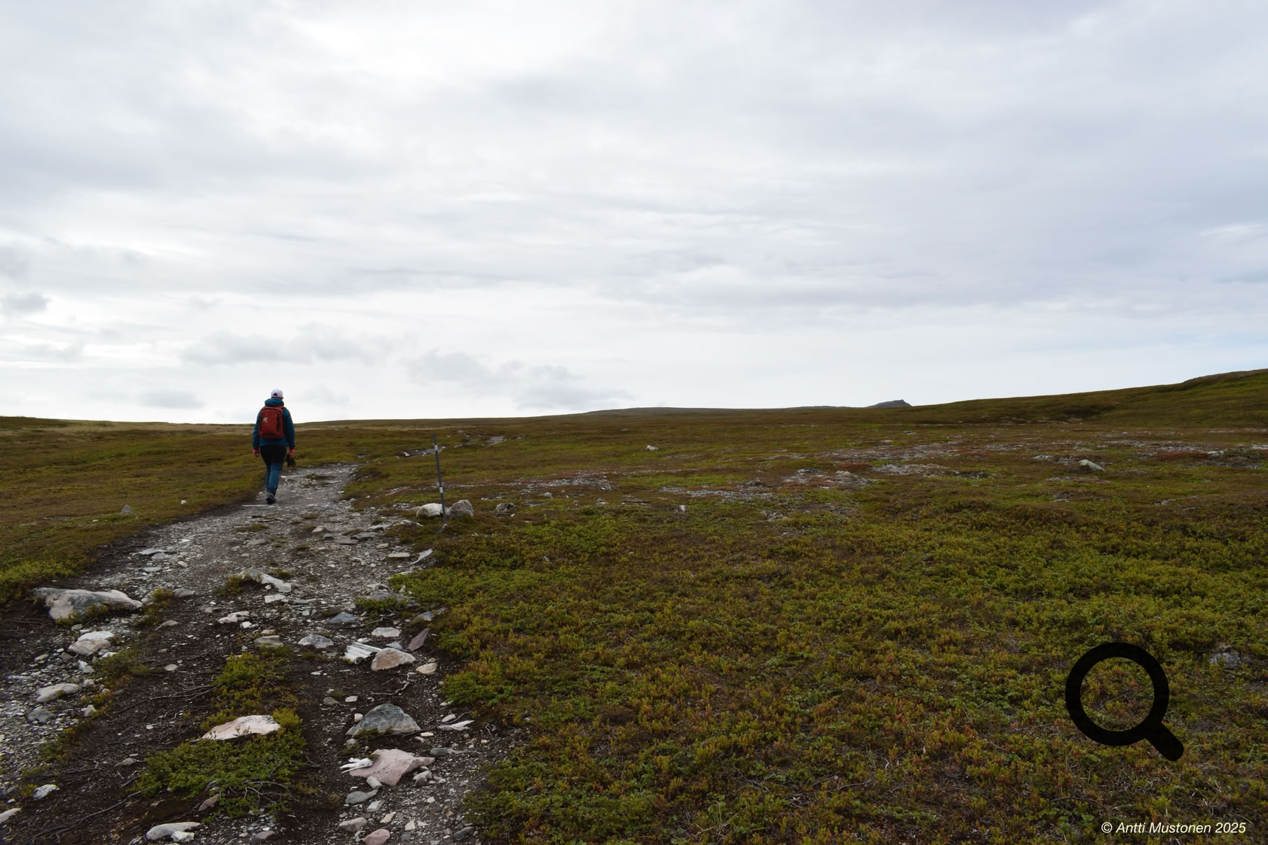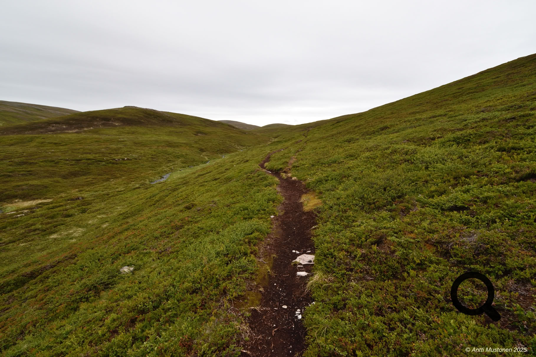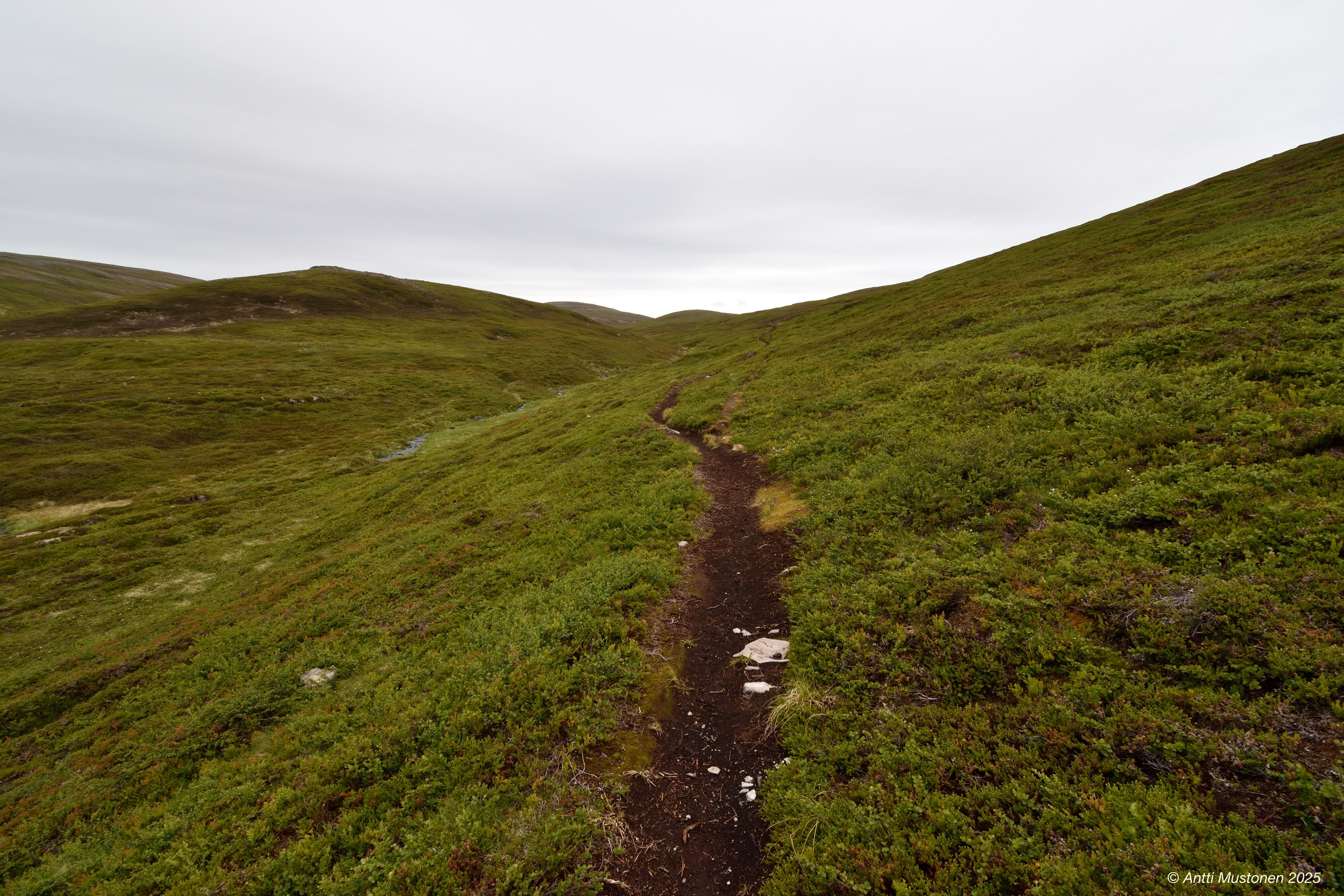 Horisontti peitti rannikon suuntaan tehokkaasti näkymän merelle. Toki maasto oli mahtavan näköistä nummea, ja polun molemmin puolin nousi kauniita tuntureita.