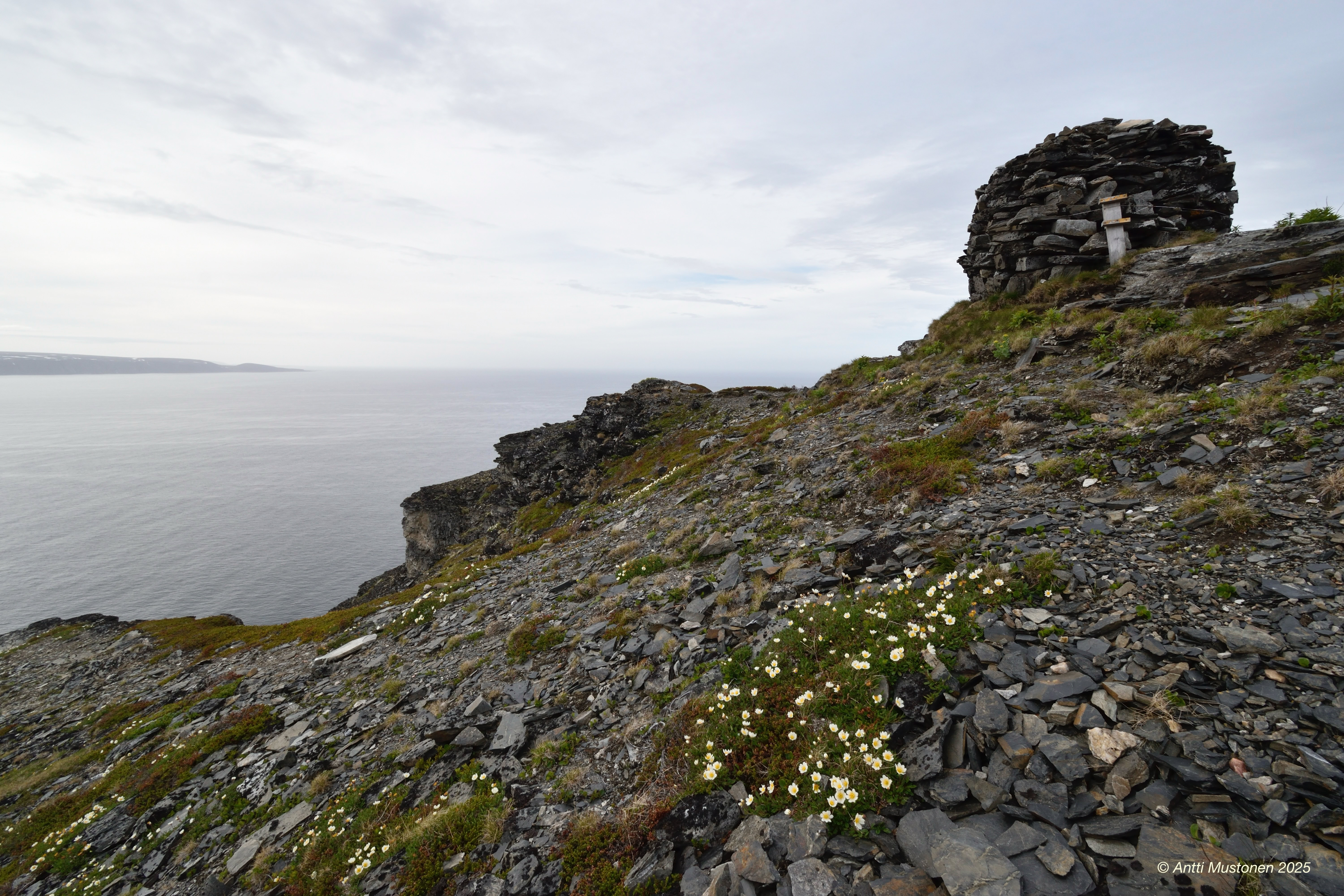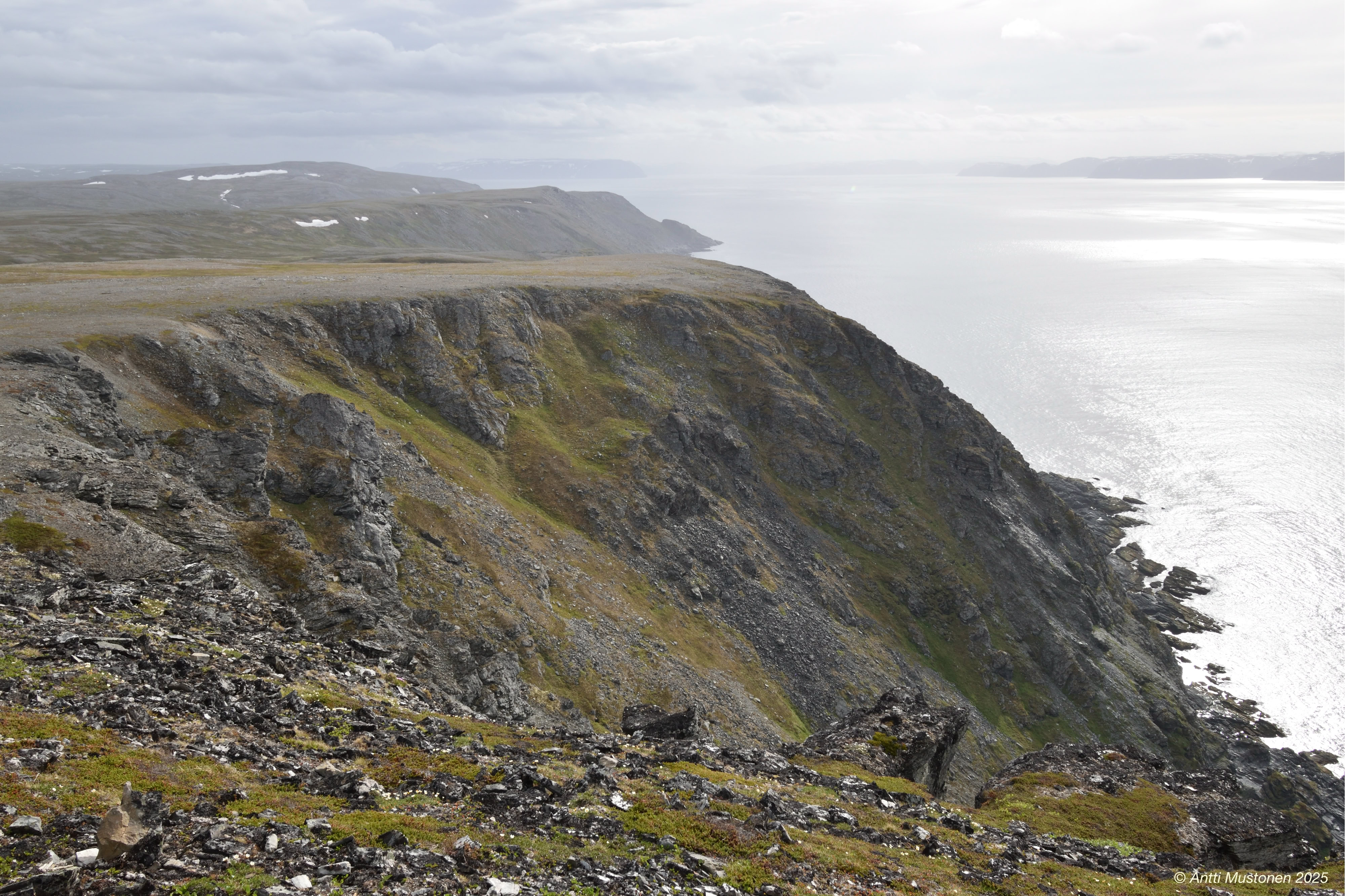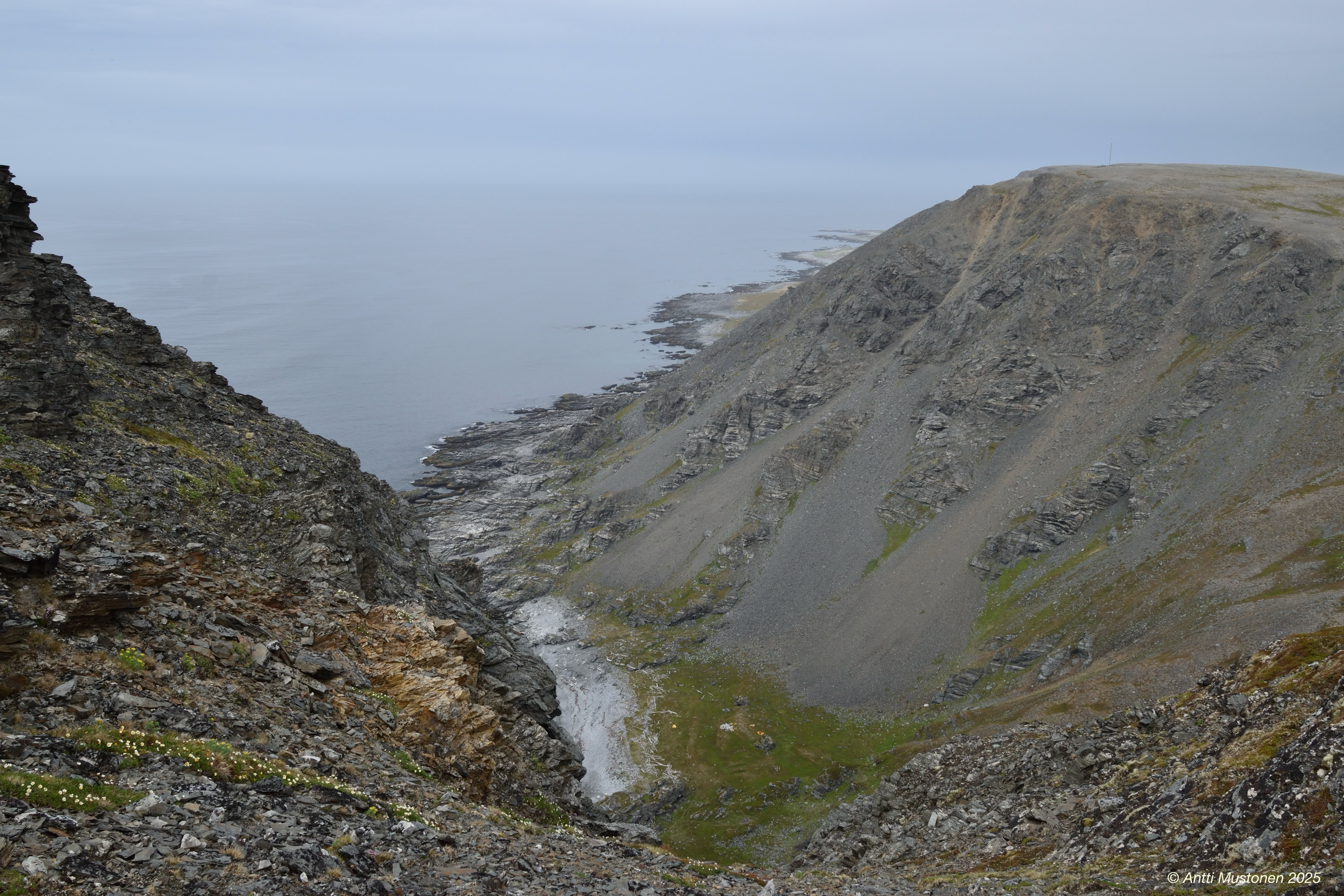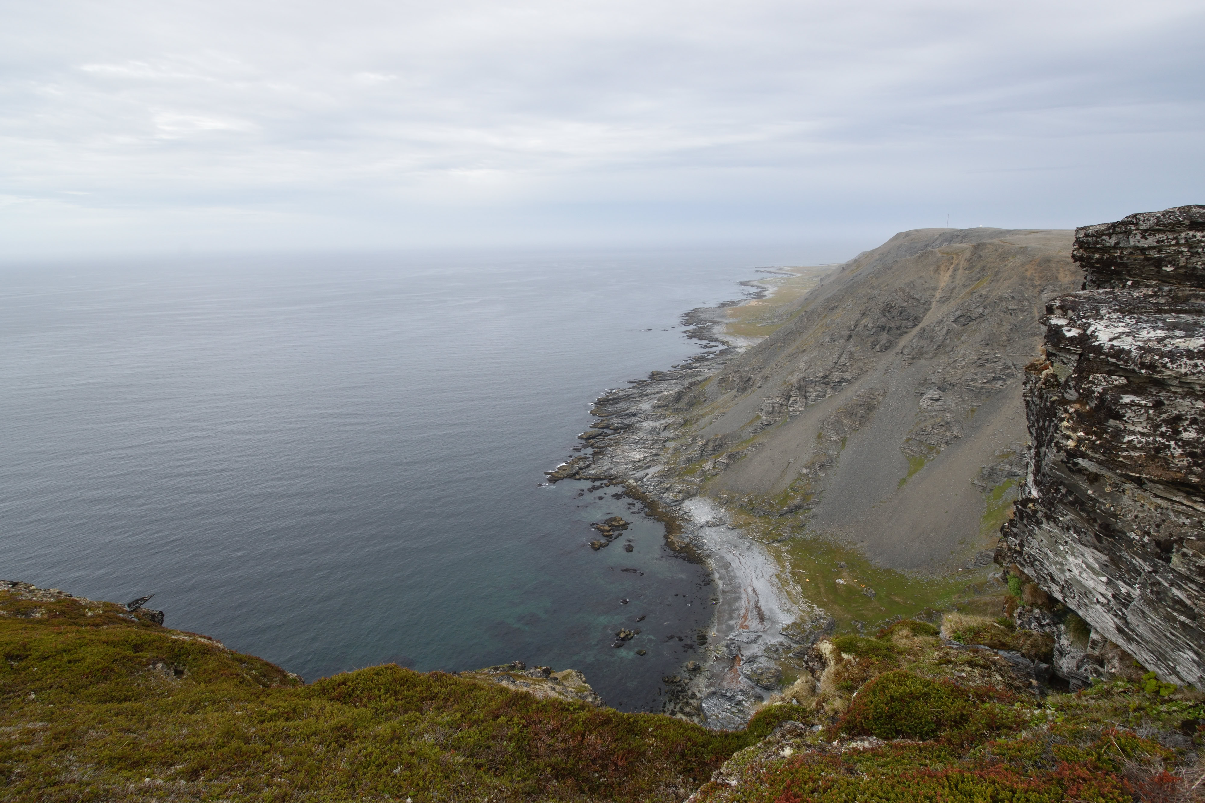 Berlevågin tienoon pääkohteemme oli Tanahorn. Barentsinmeren rannikolla oleva jyrkänne, joka kohoaa 266m korkeuteen viereisestä merenpinnasta! Se on aika paljon ajatellen, että meri on siinä ihan vieressä.