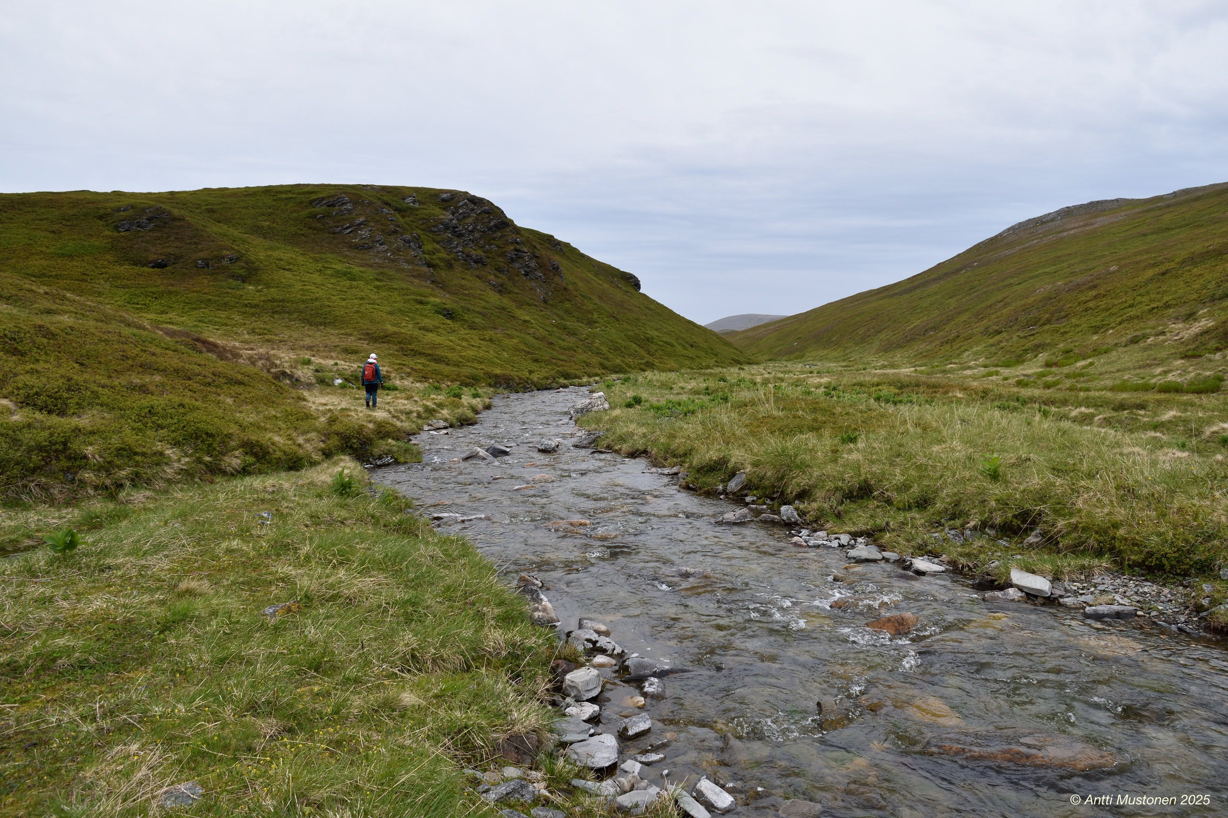 Ylitimme pian tosi pienen puron, joka virtasi polkumme poikki pienessä kurussa pohjoisesta.