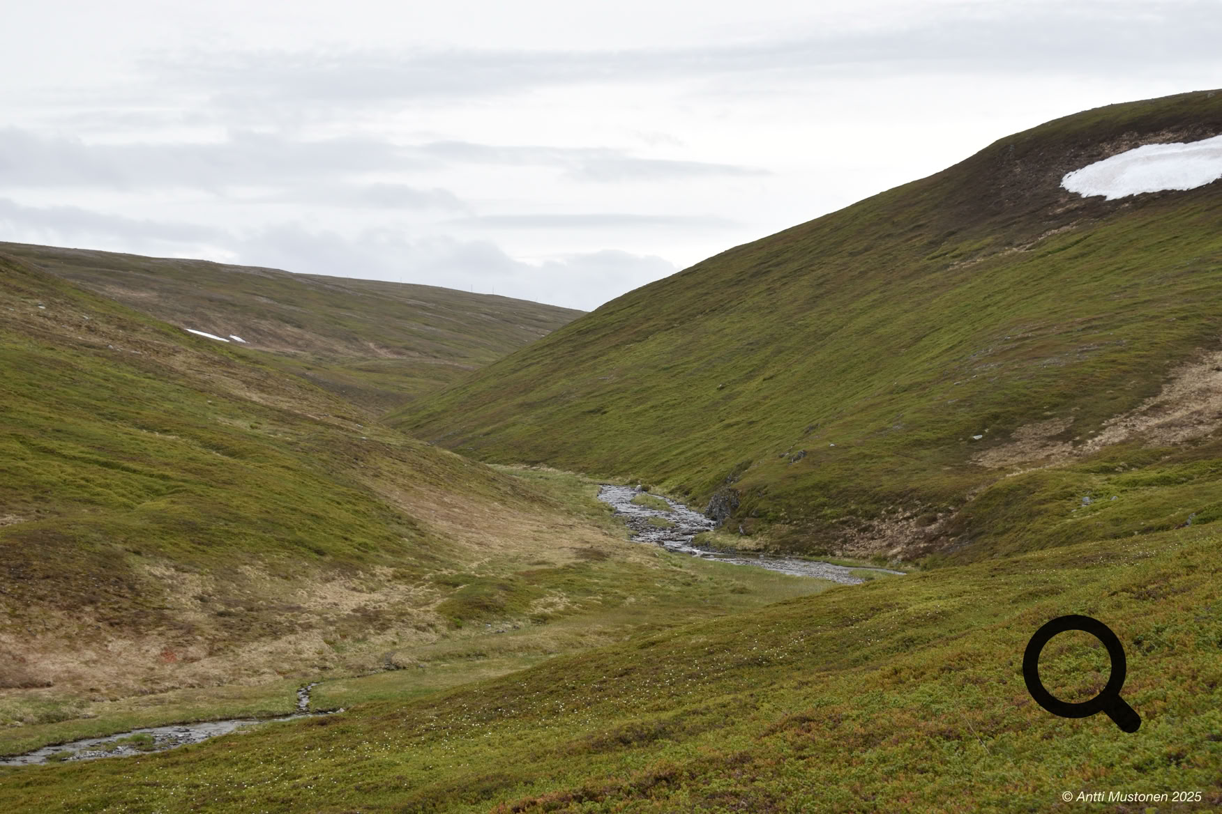 Rentukoita pienen tunturilta tulevan puron varressa.