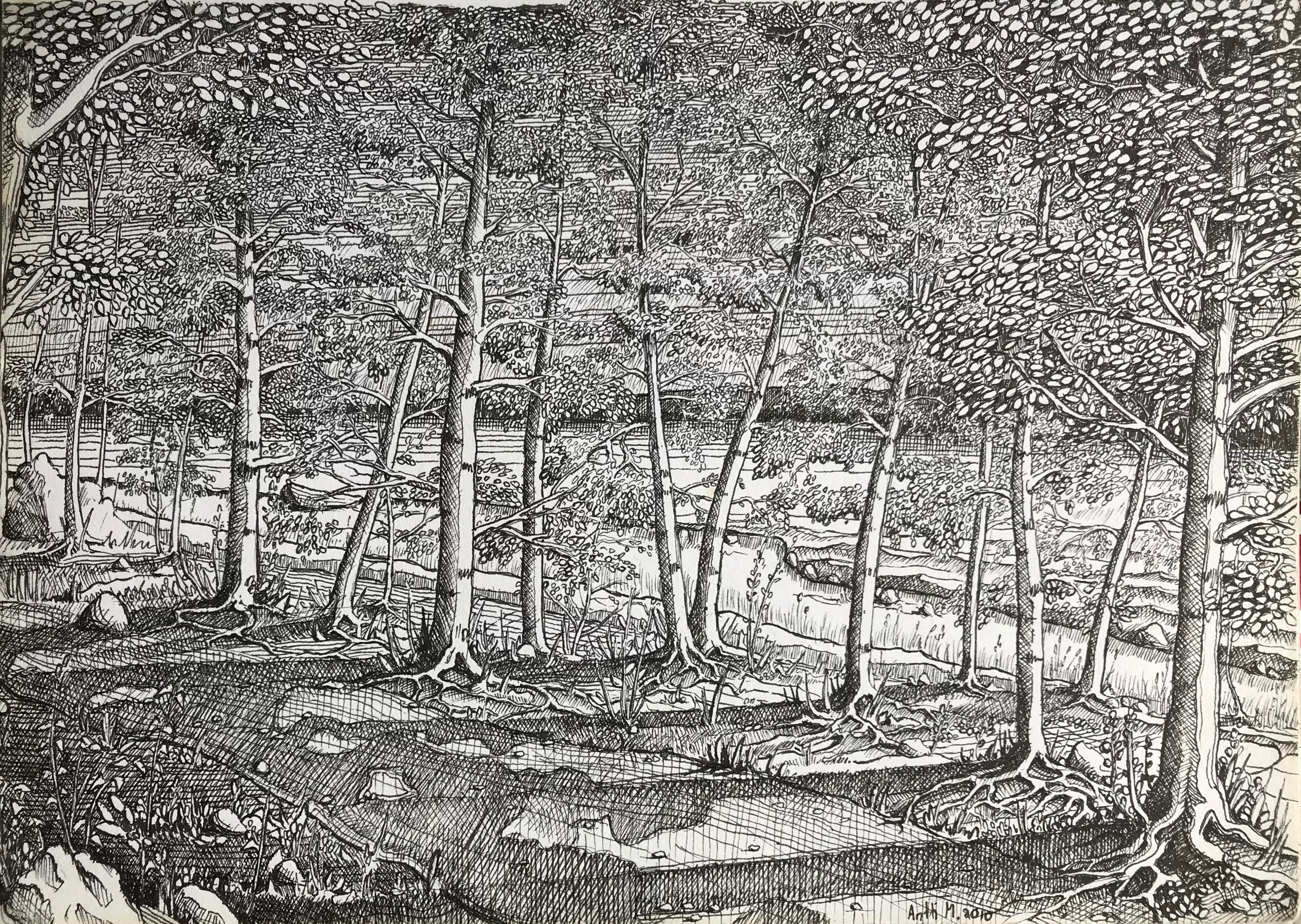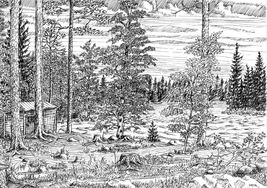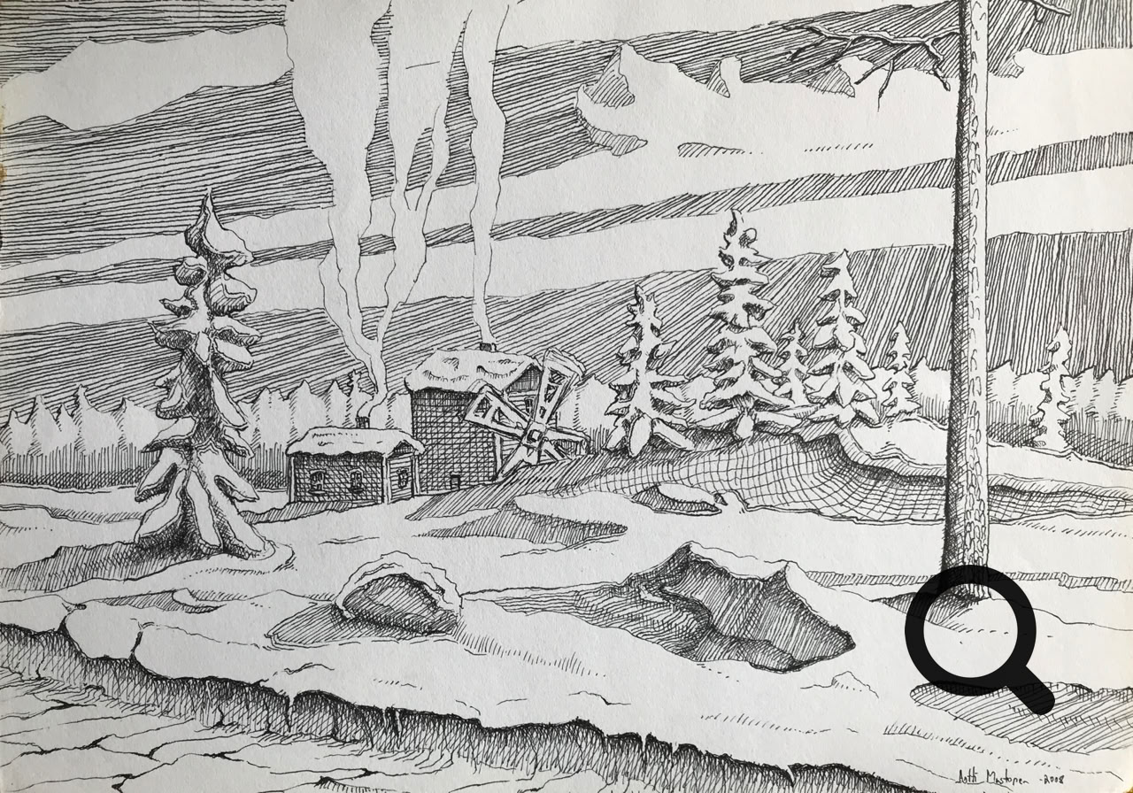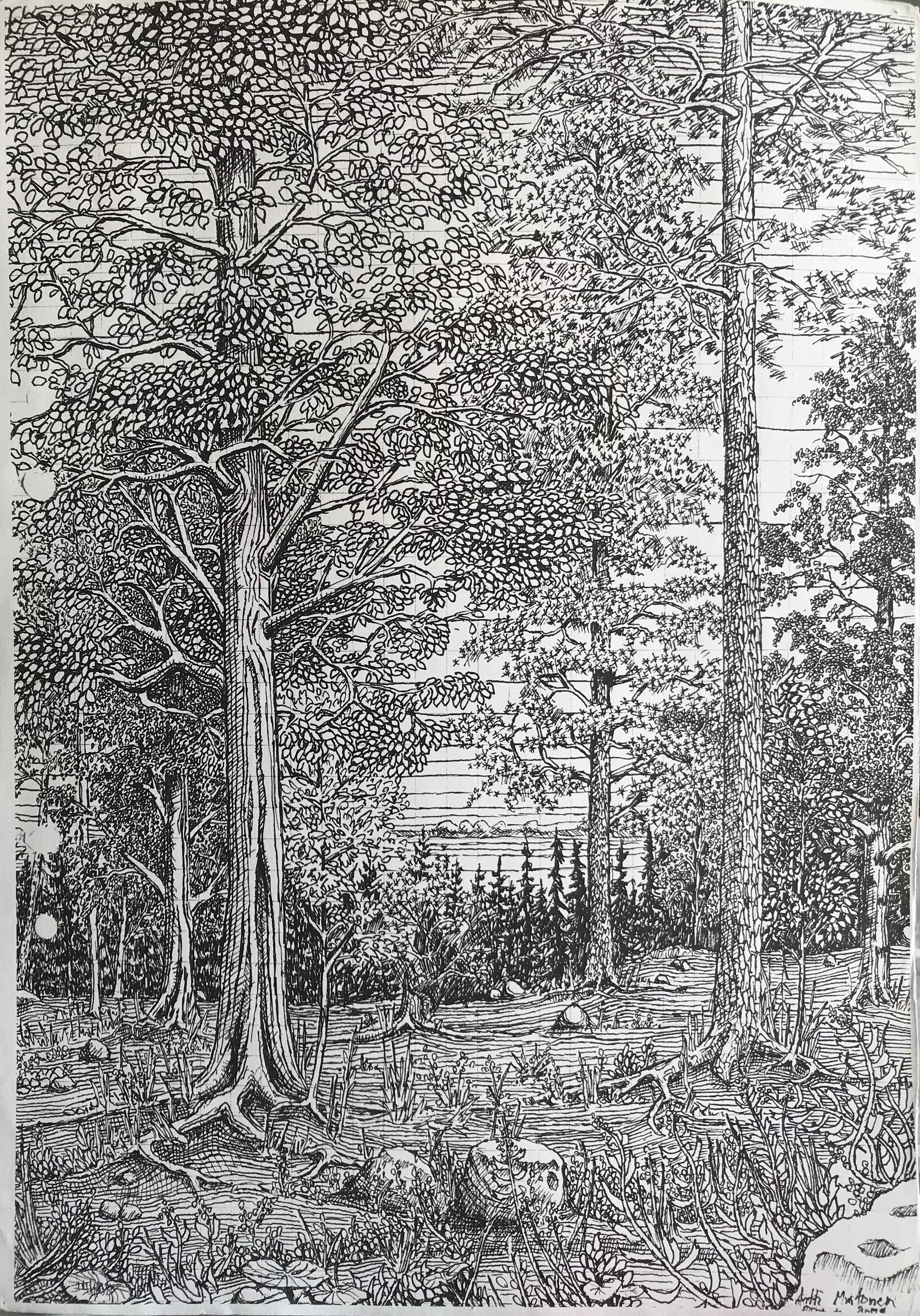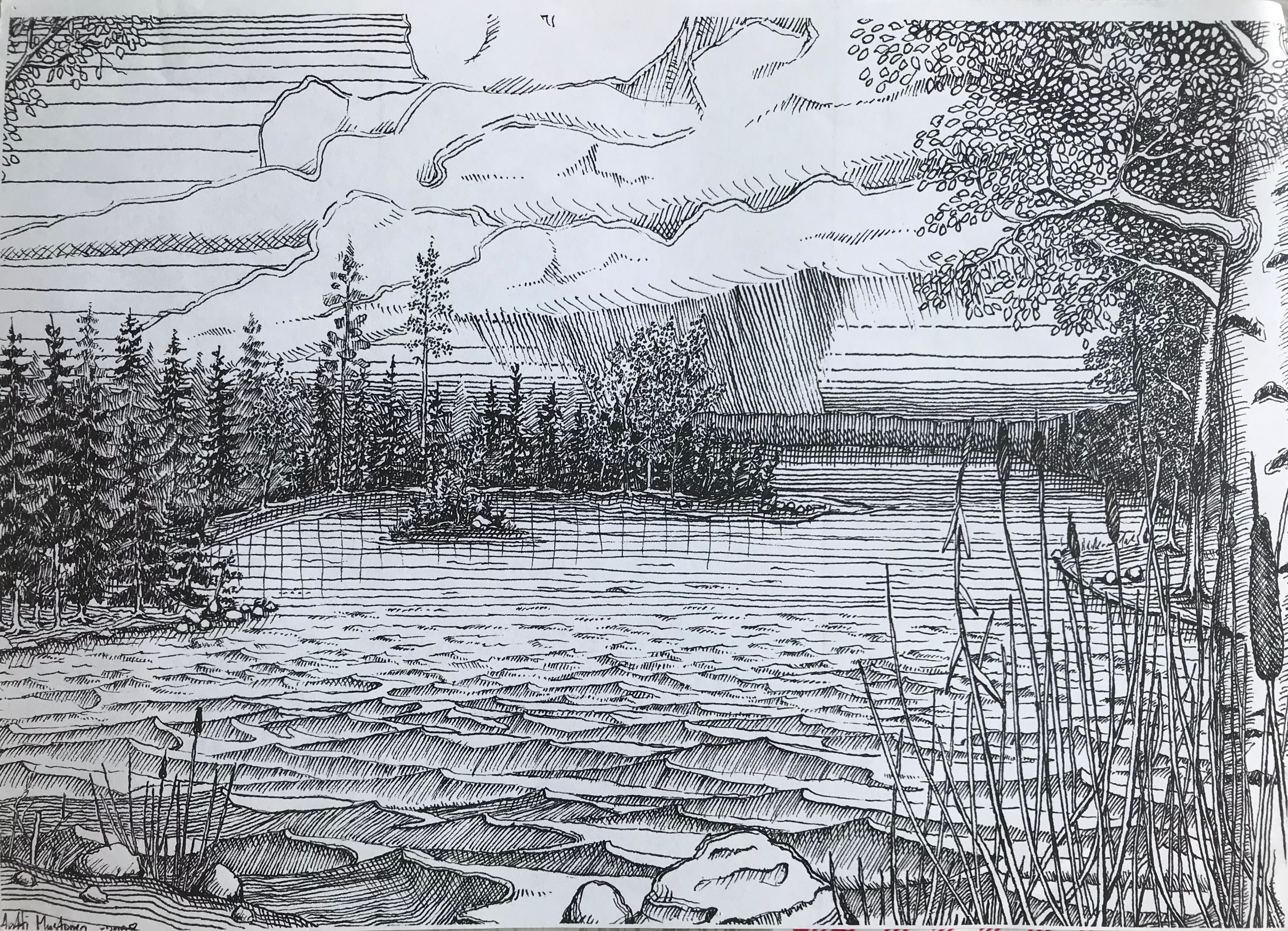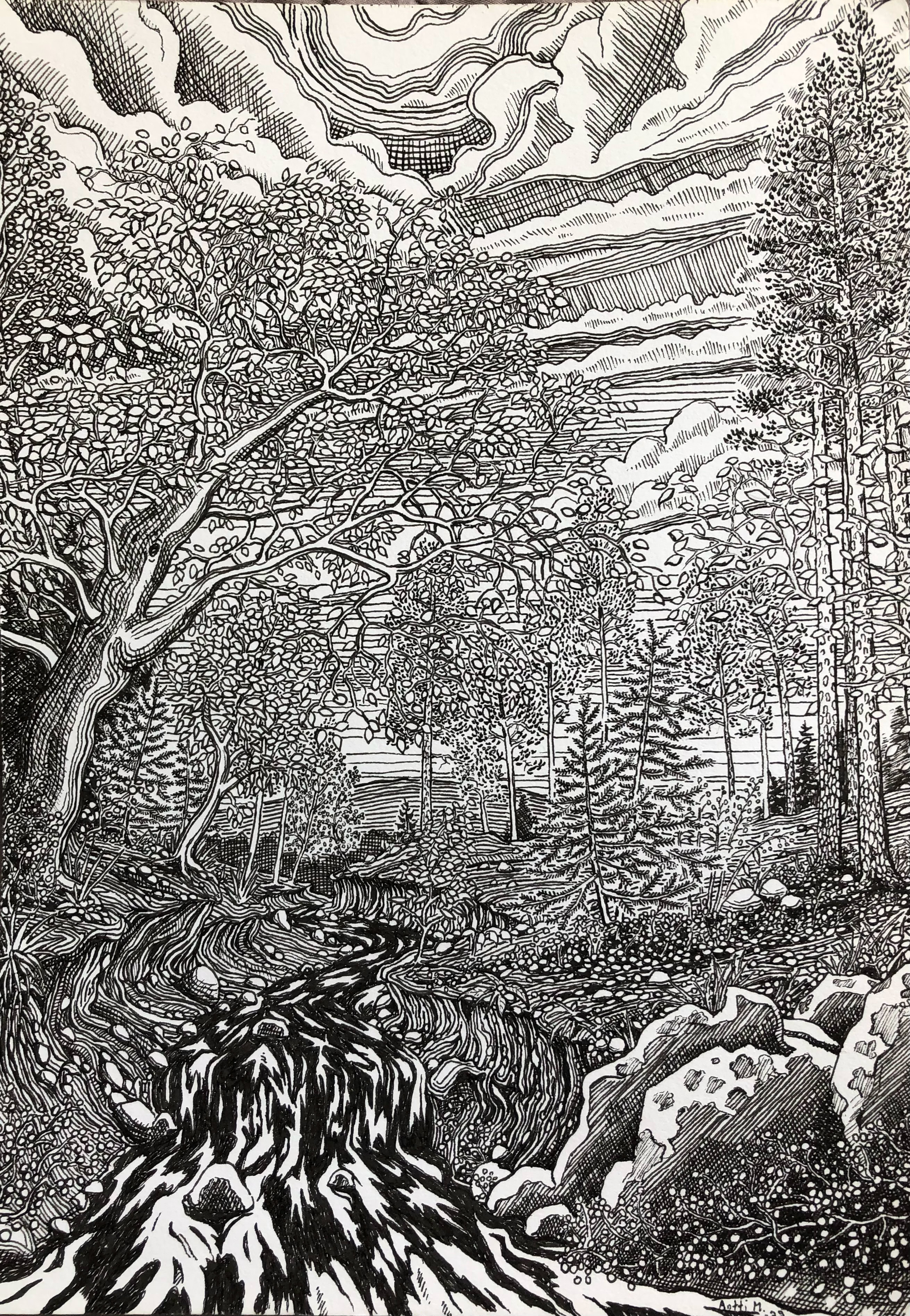 Tussi ja puuväri. A4 piirrustuspaperi, 150€