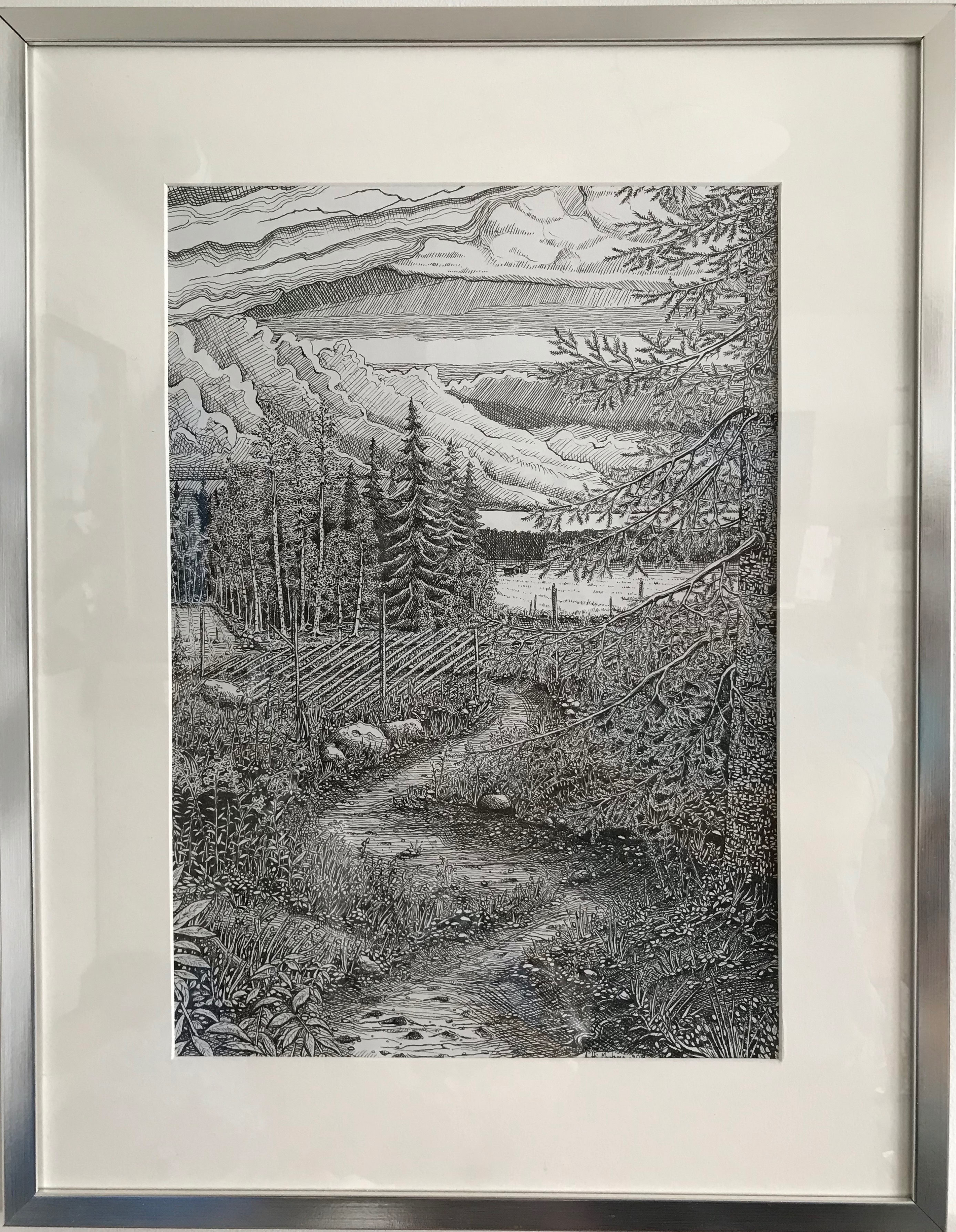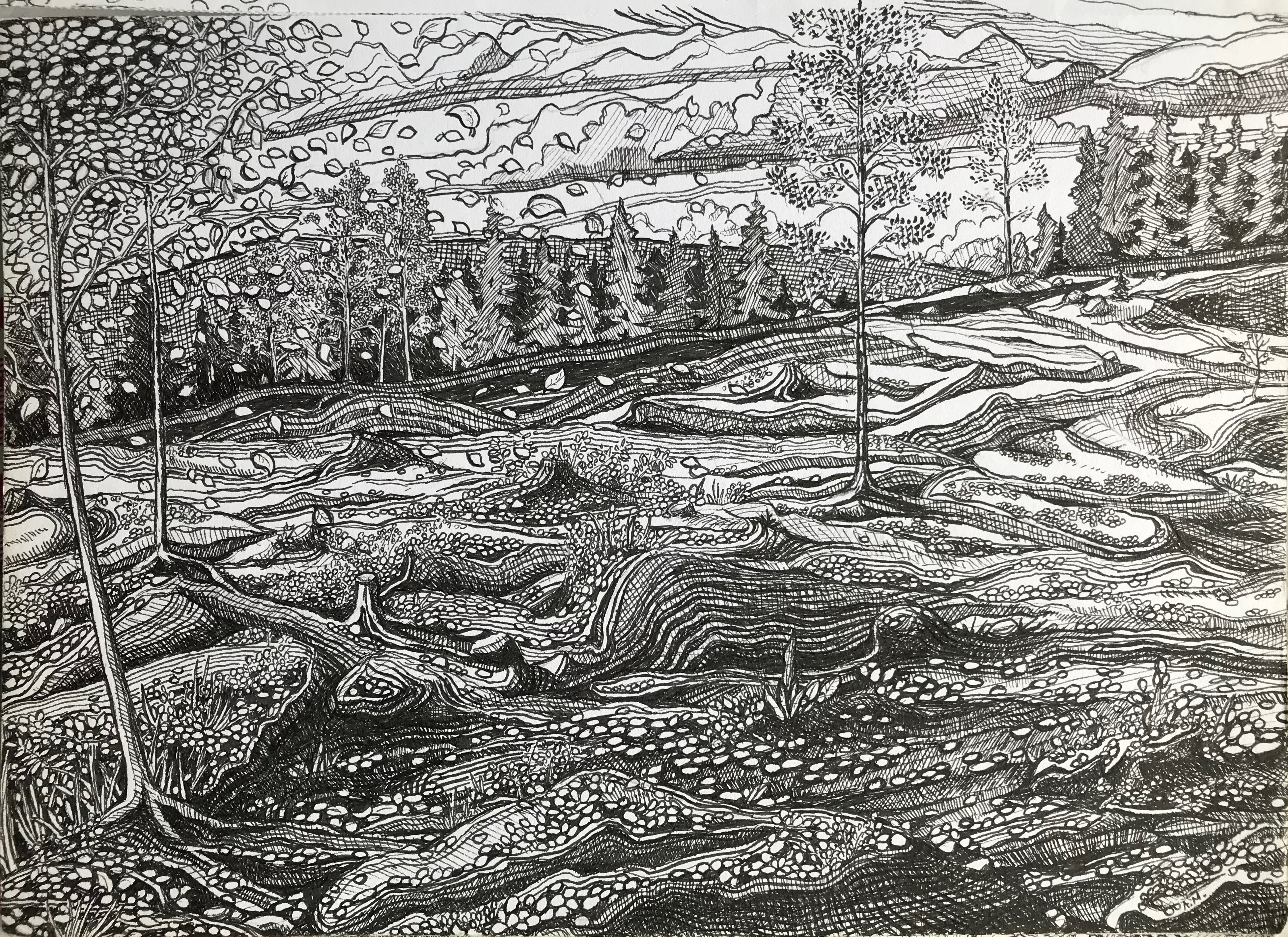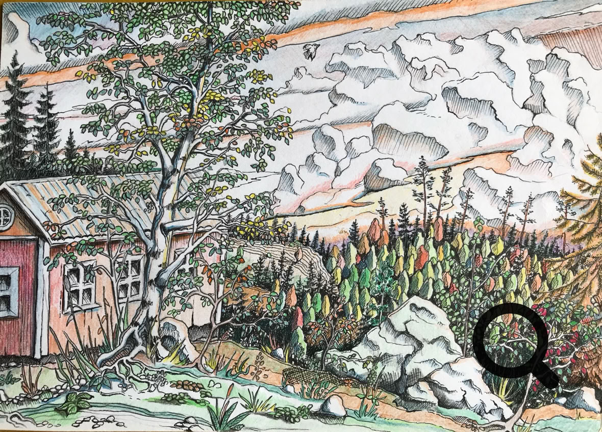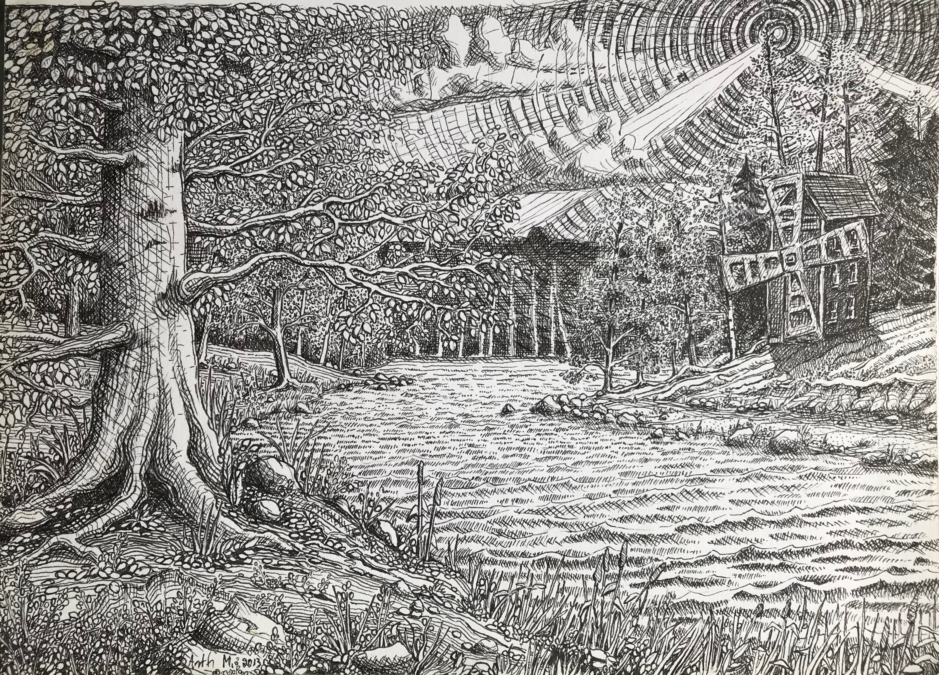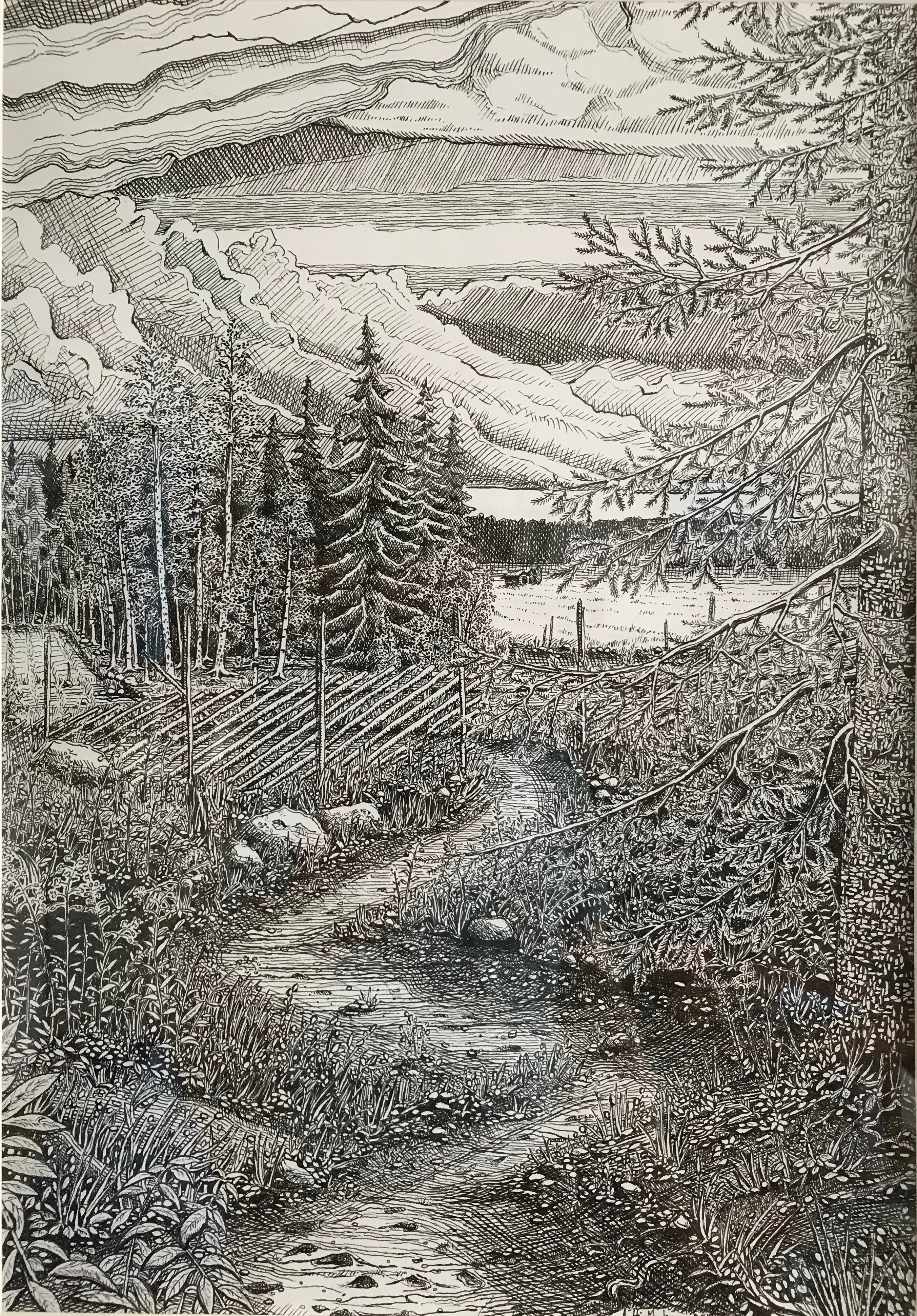 Tussi ja puuväri. A4 piirrustuspaperi, 150€