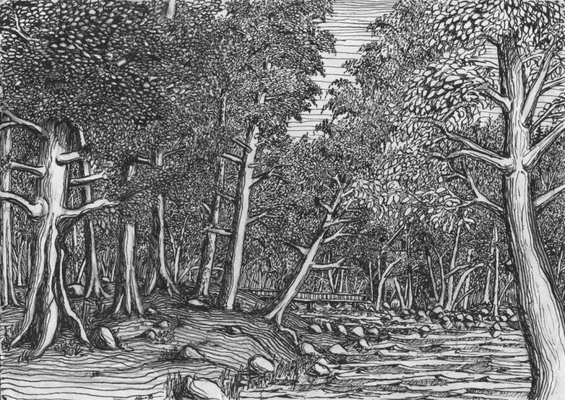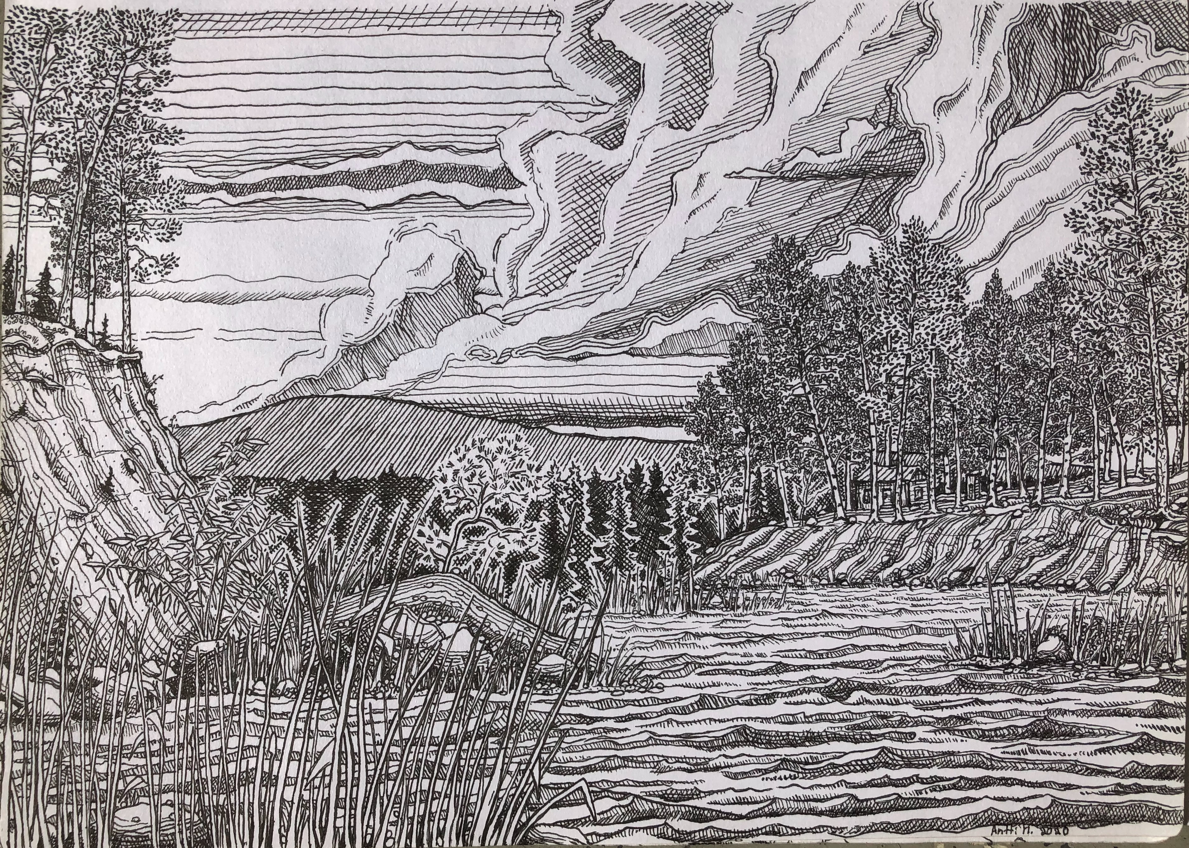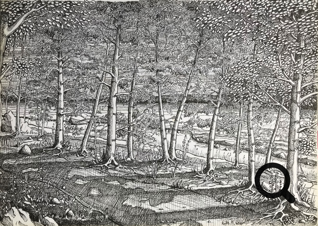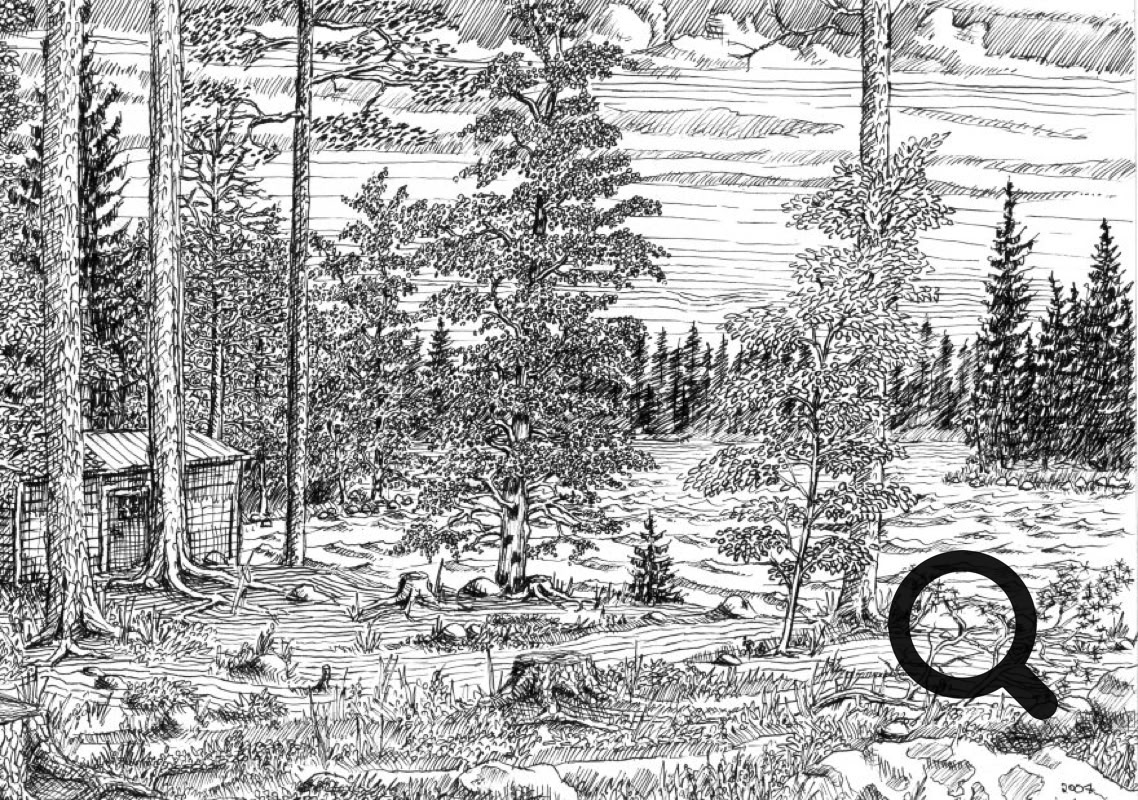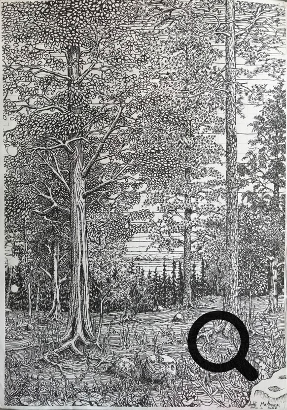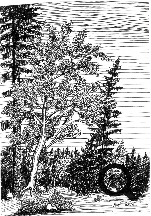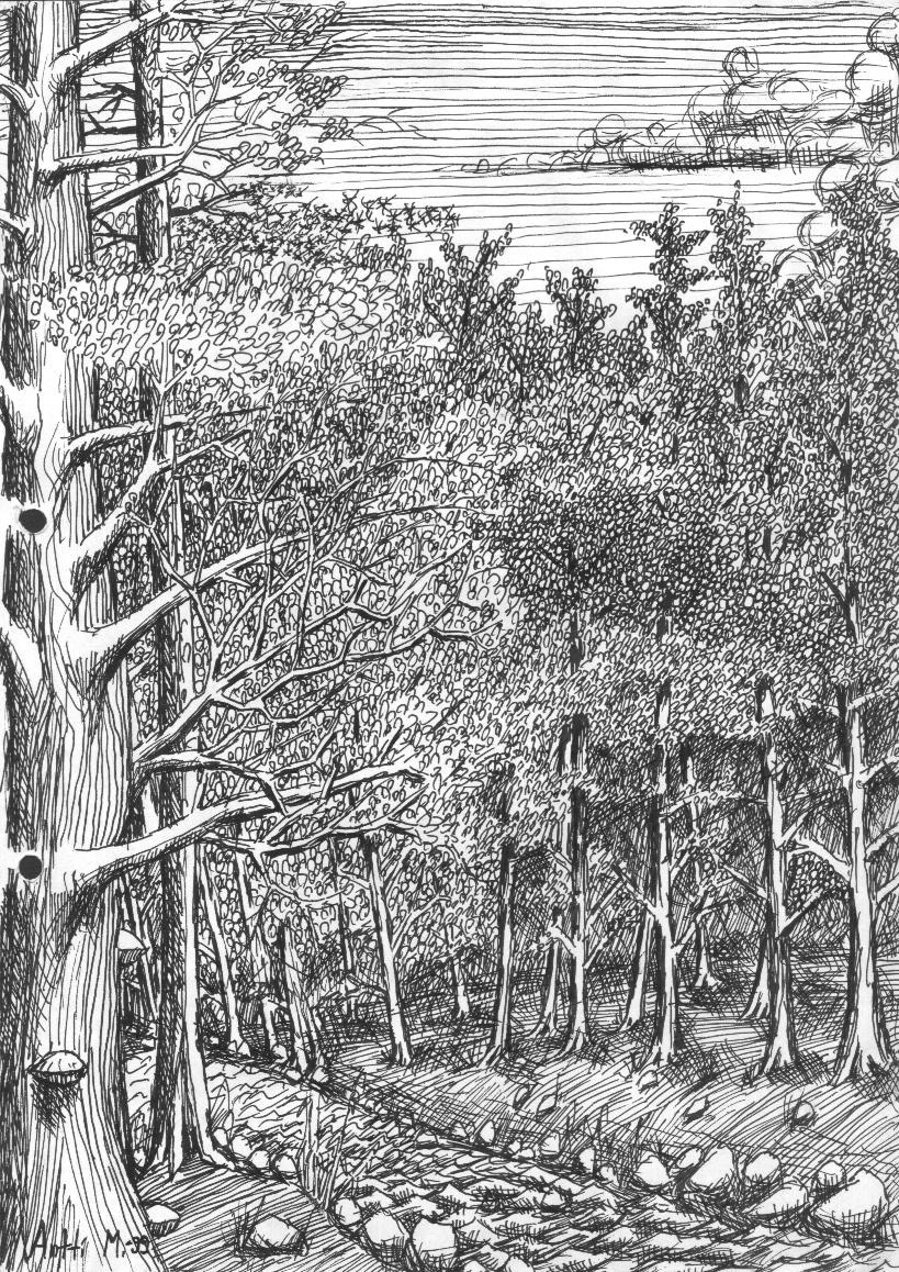 Tussi ja puuväri. A4 piirrustuspaperi, 150€
