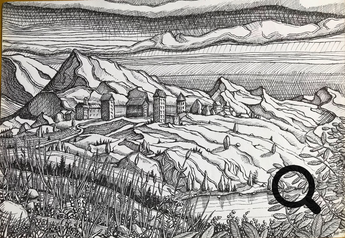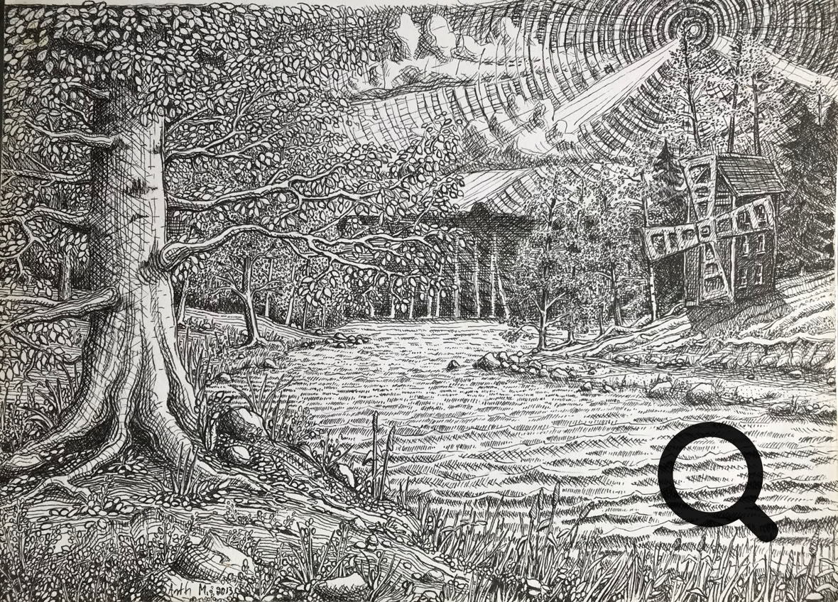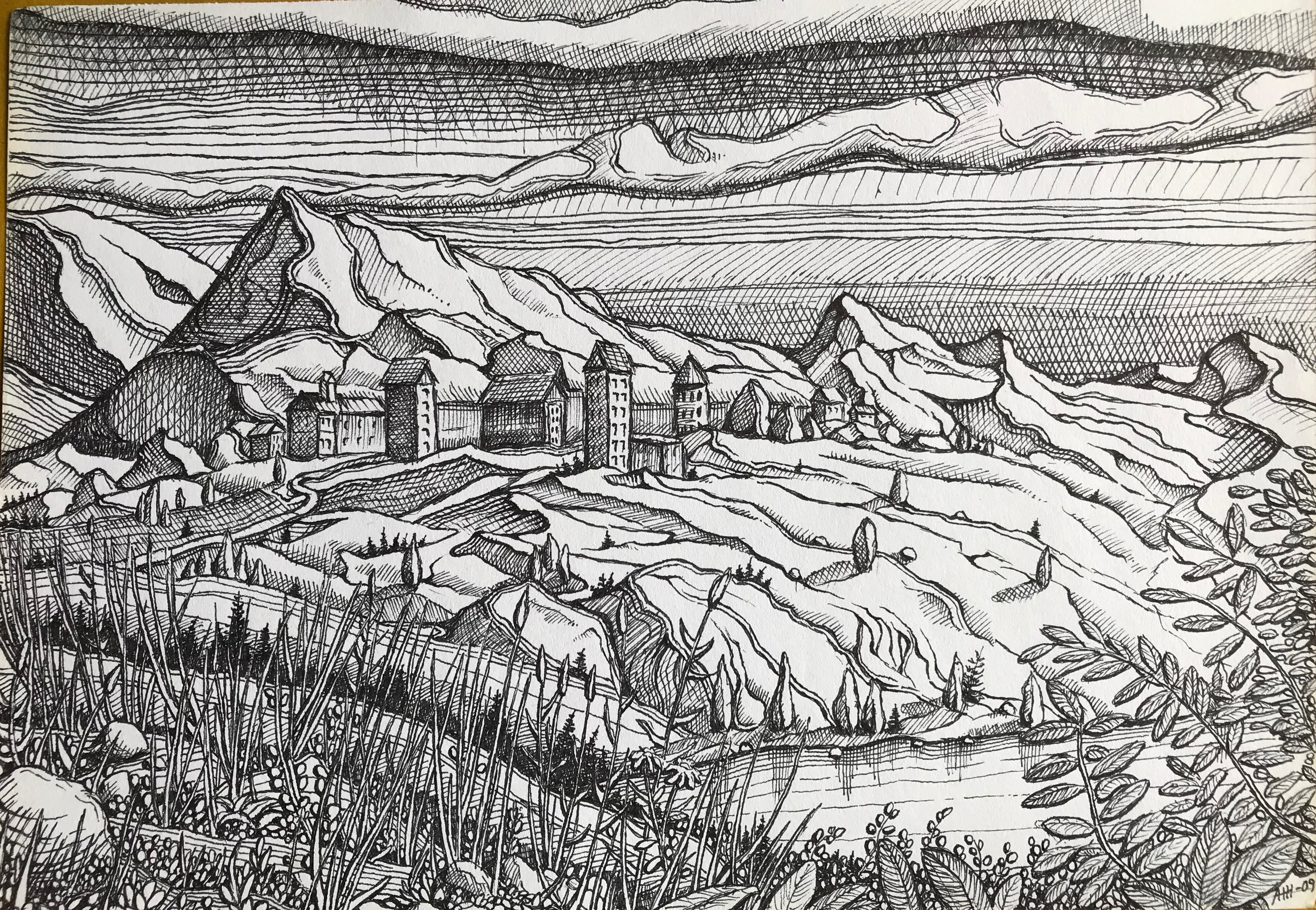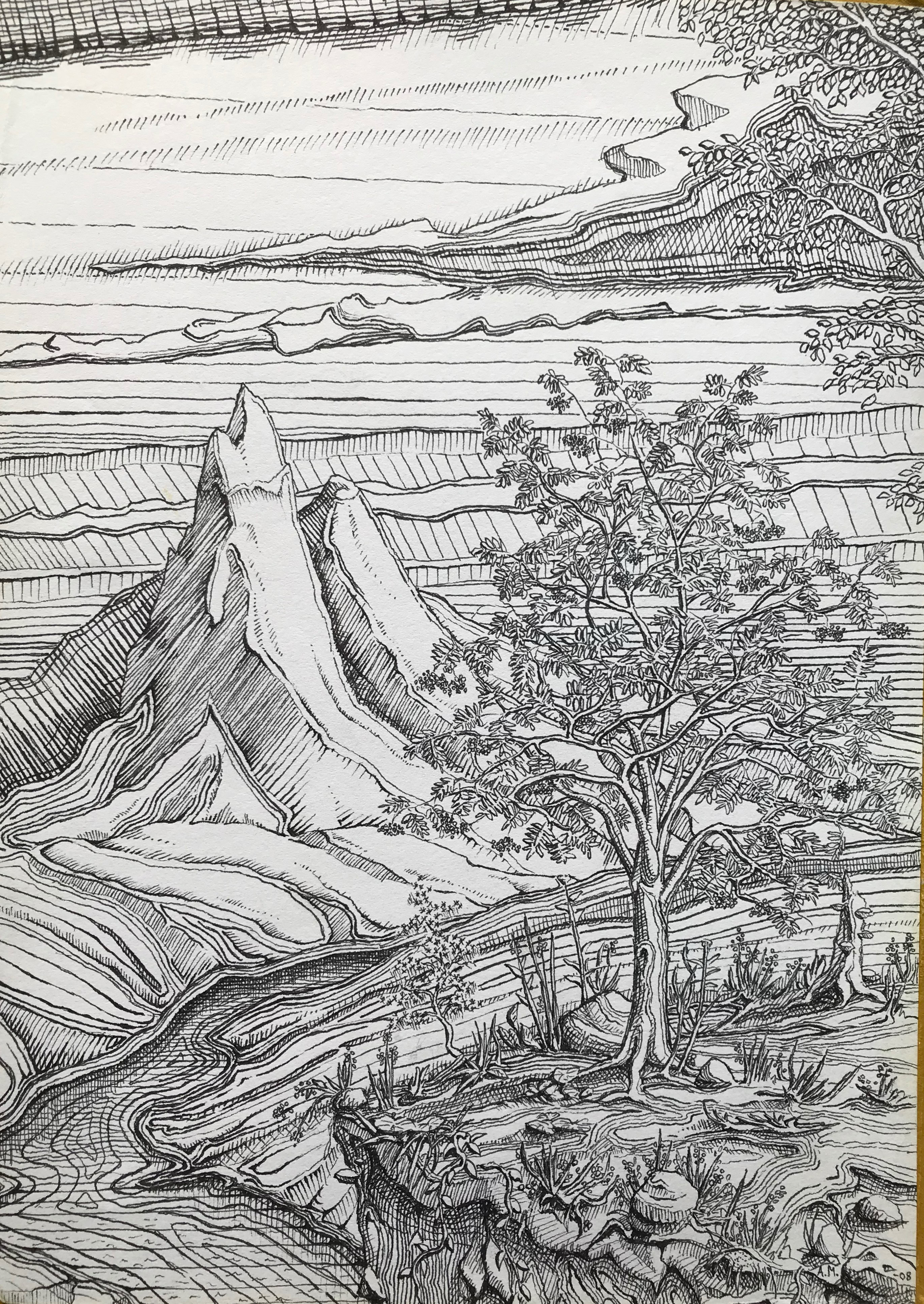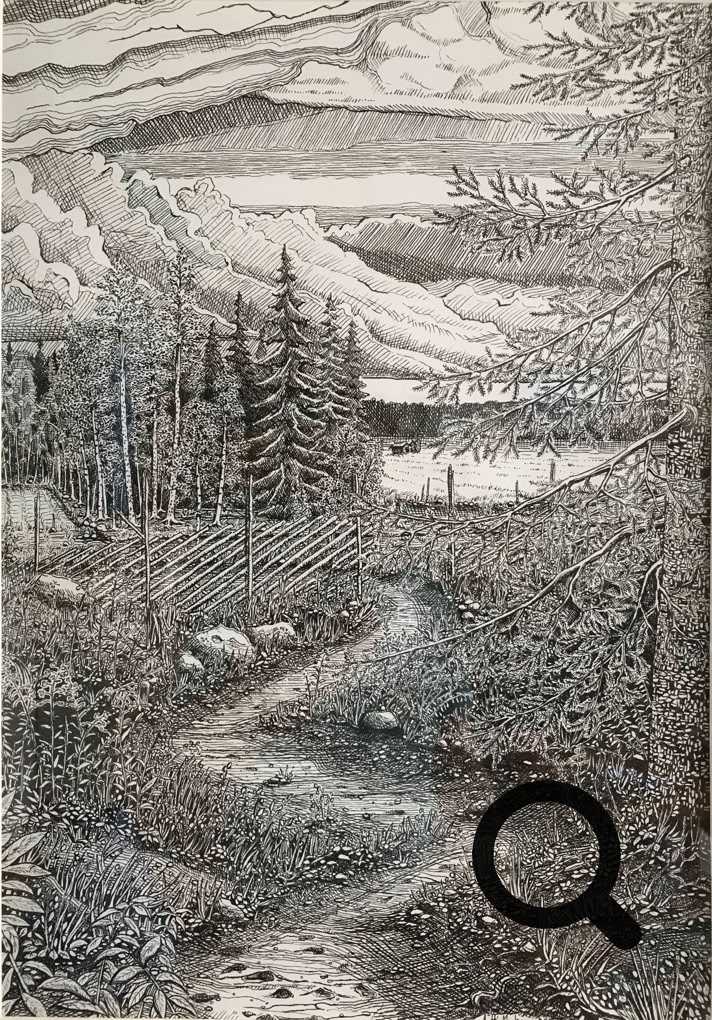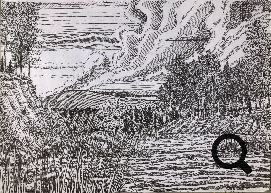 Tussi ja puuväri. A4 piirrustuspaperi, 150€