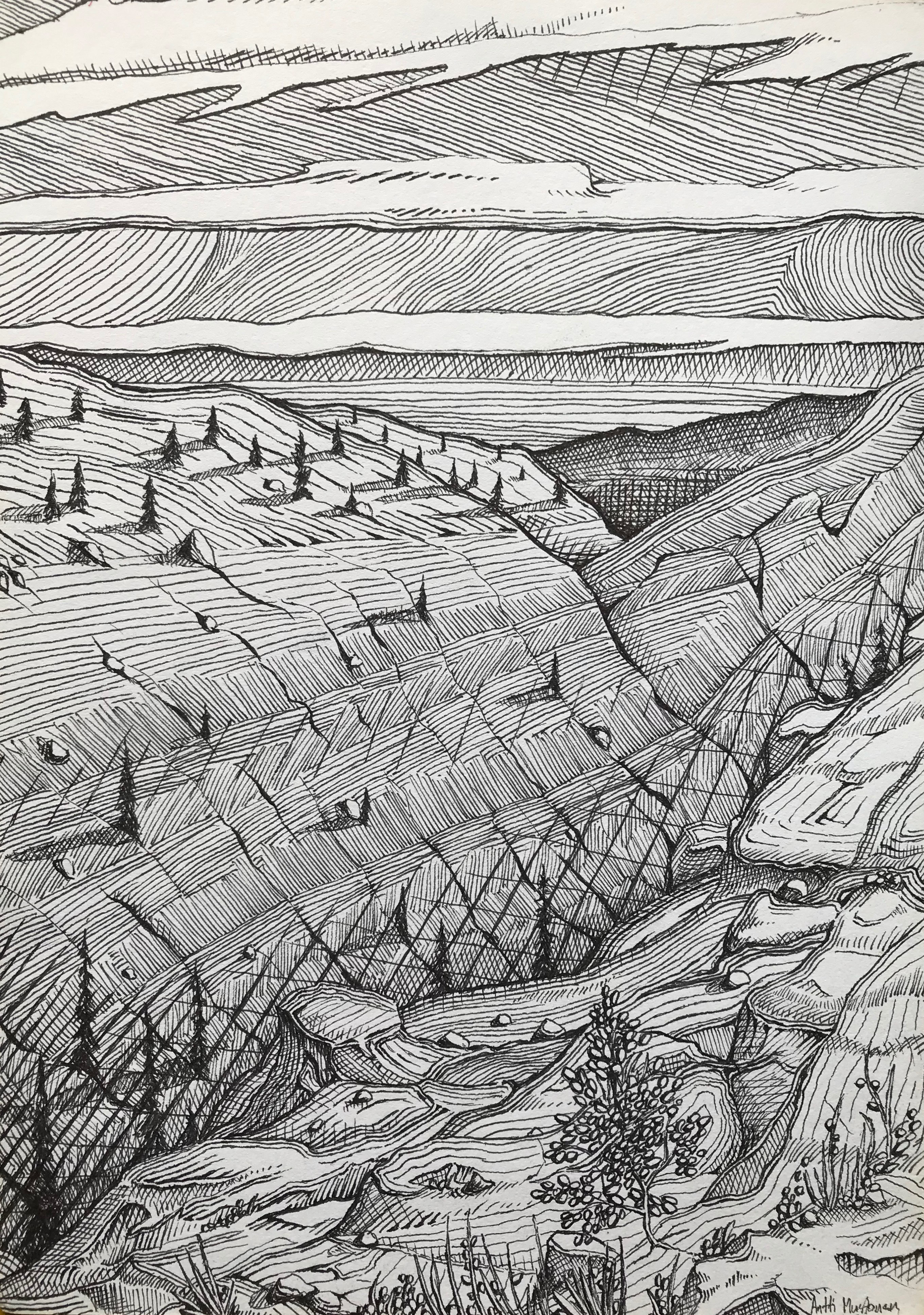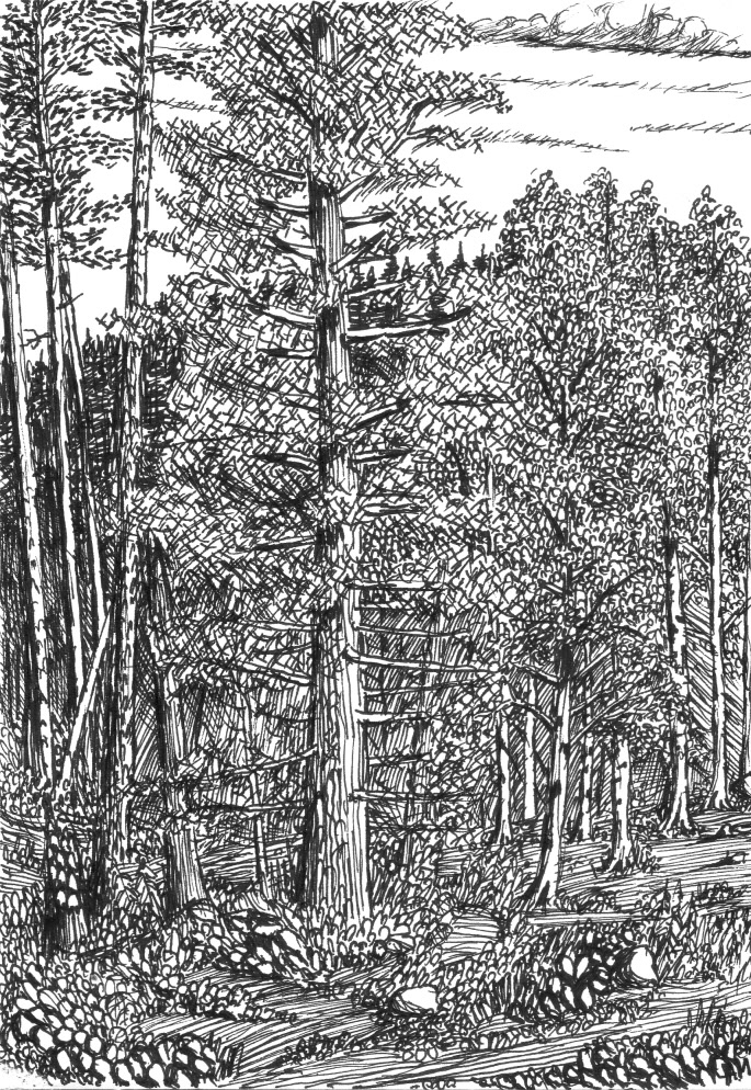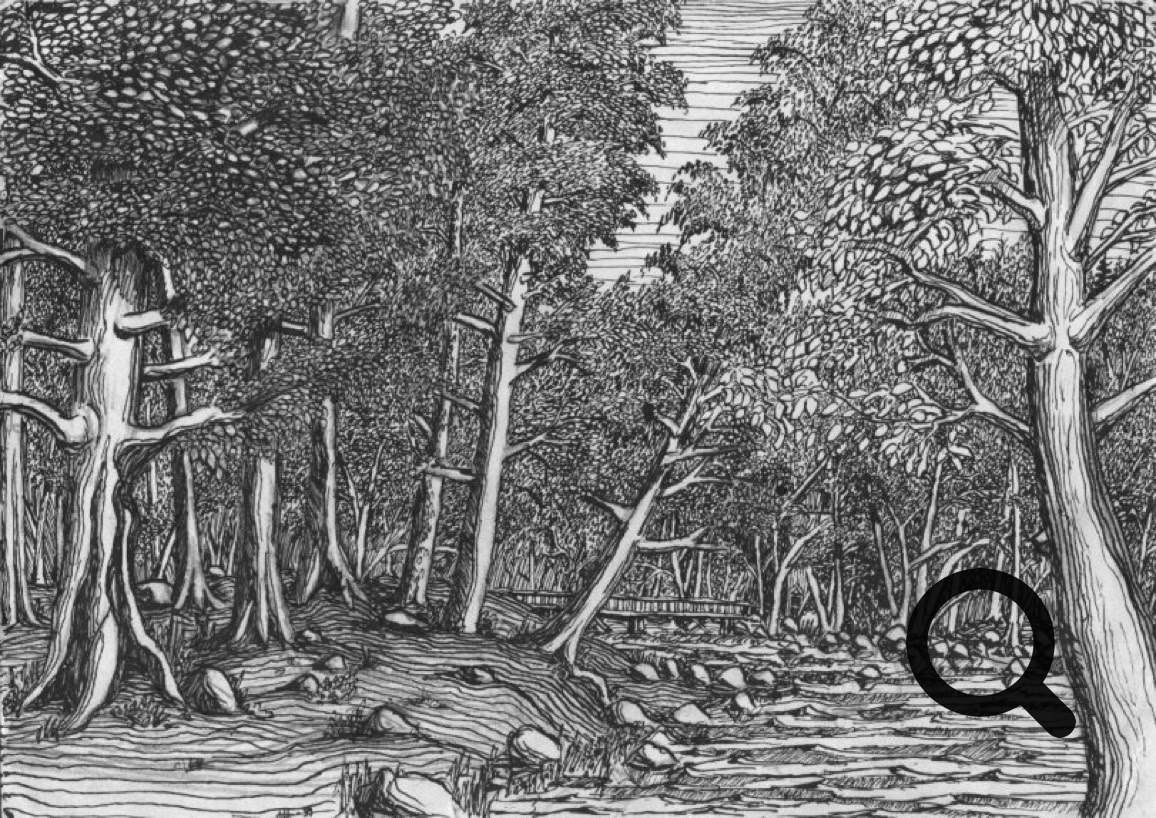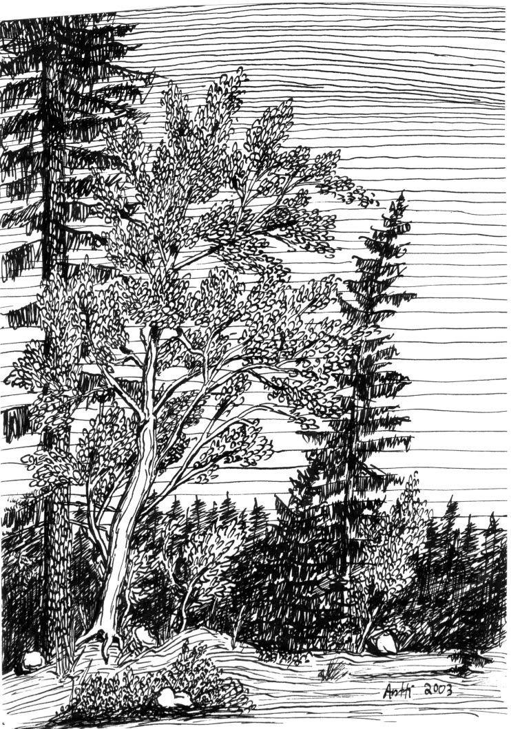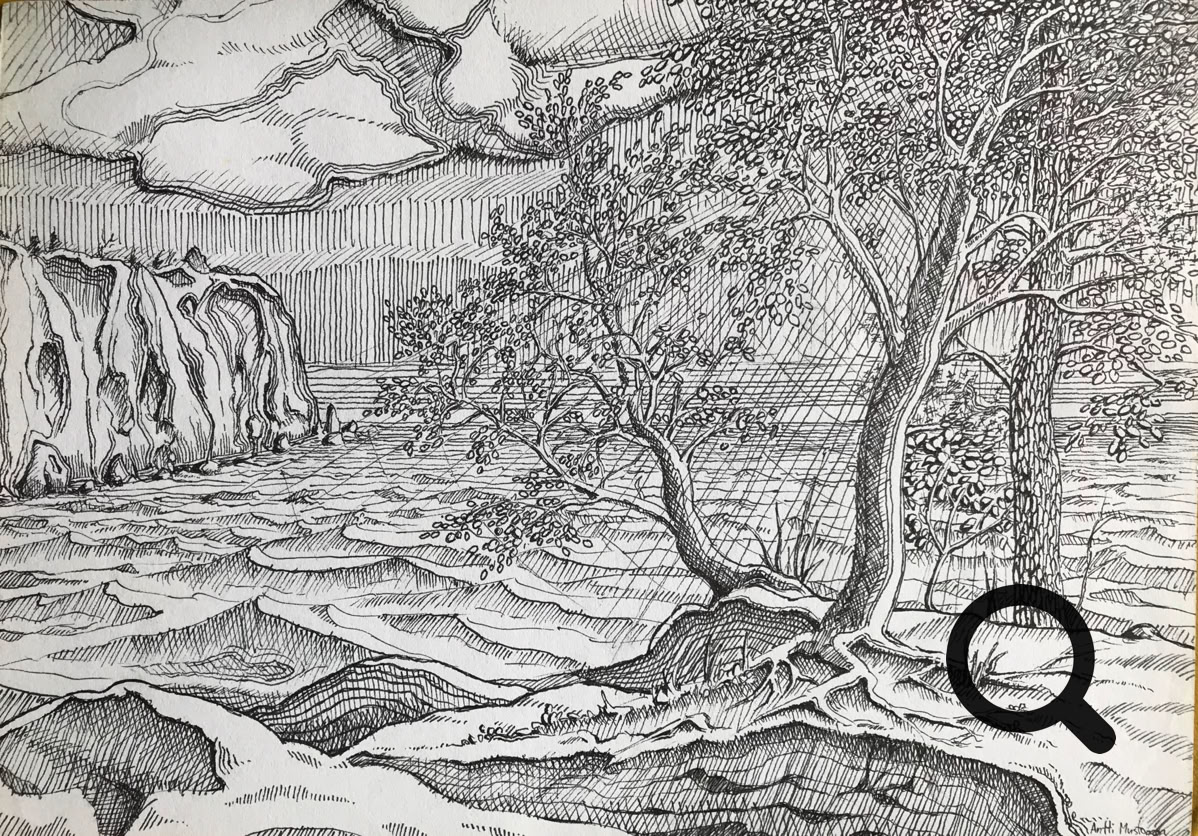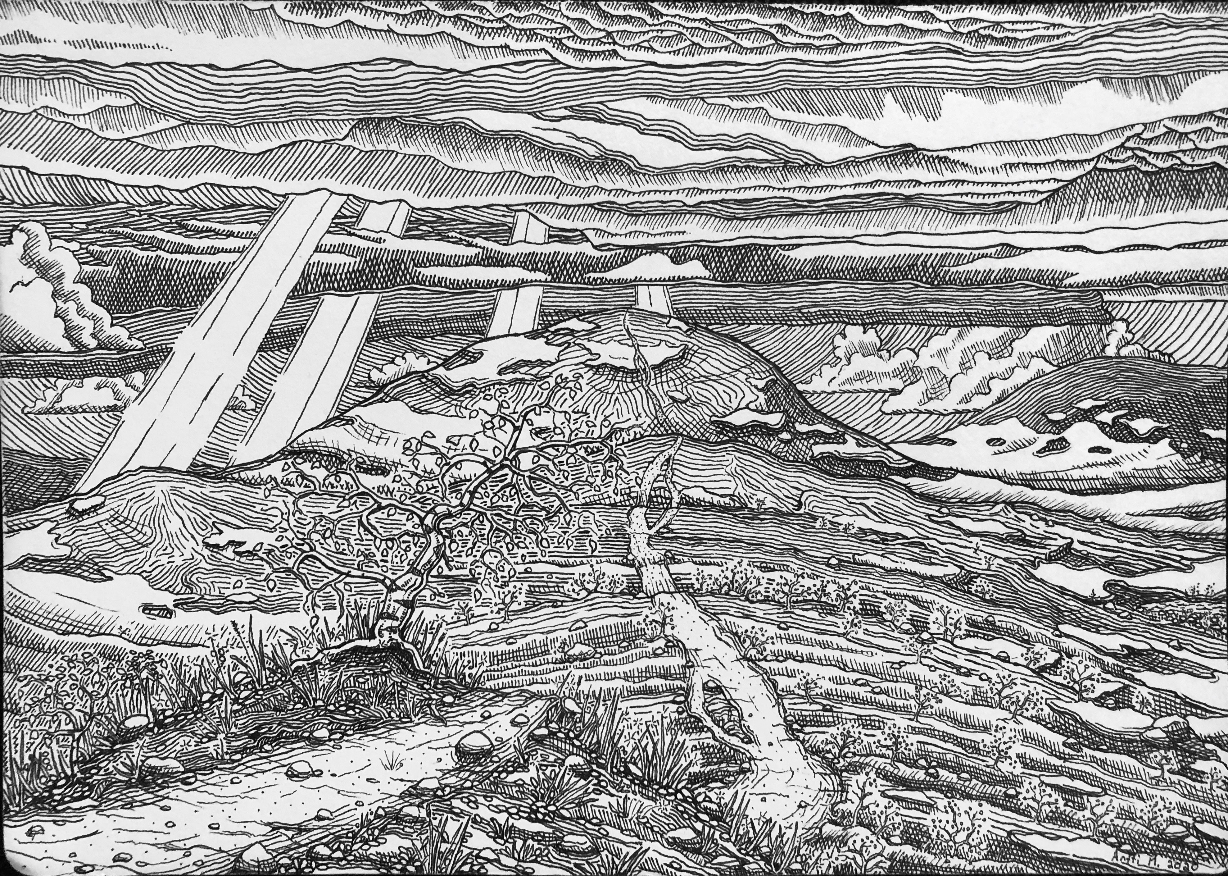 Tussi ja puuväri. A4 piirrustuspaperi, 150€