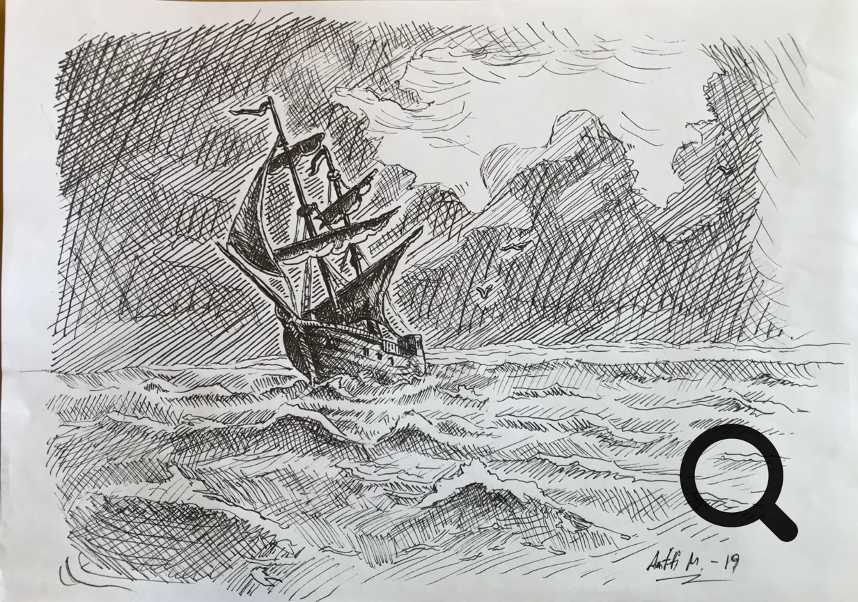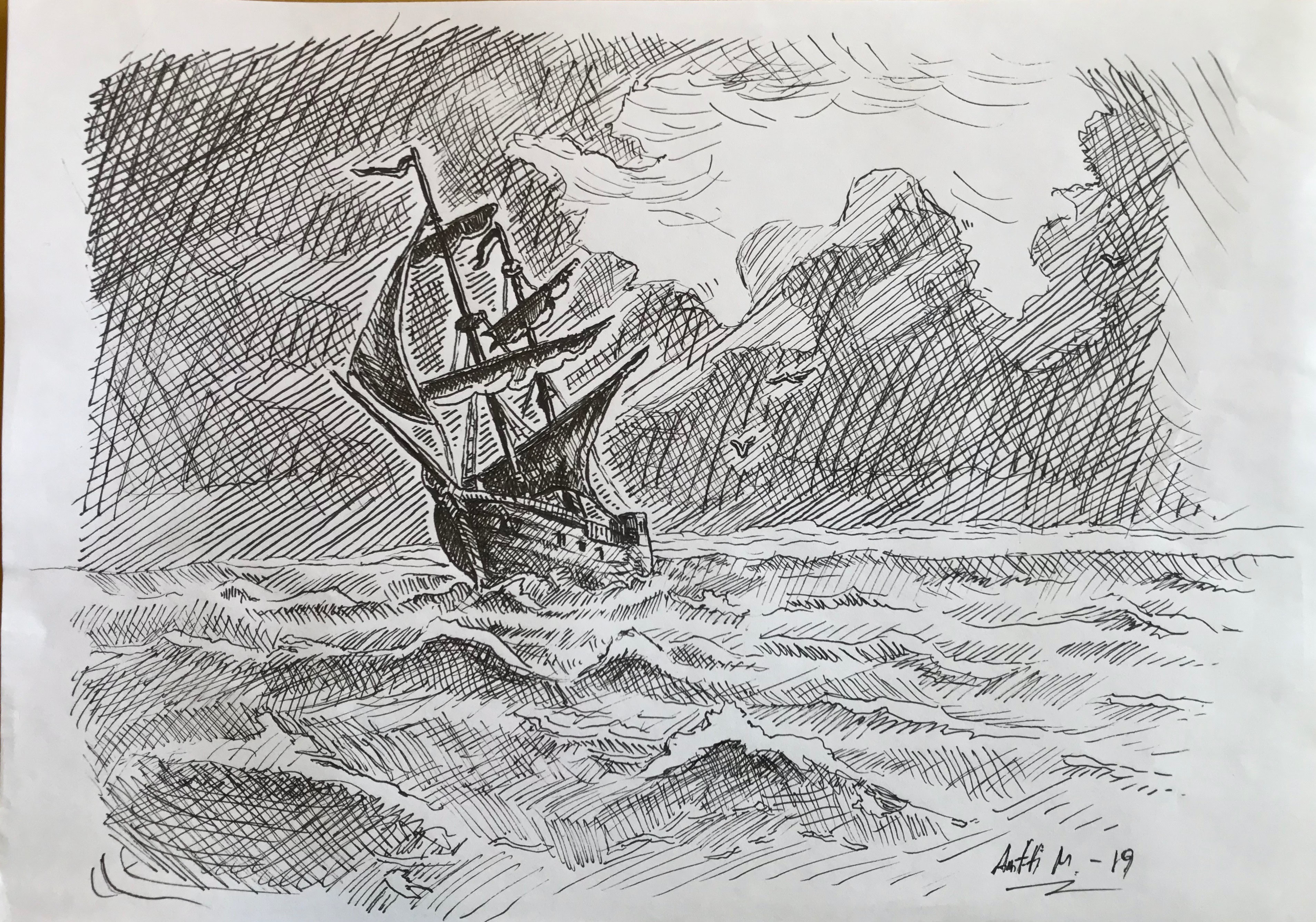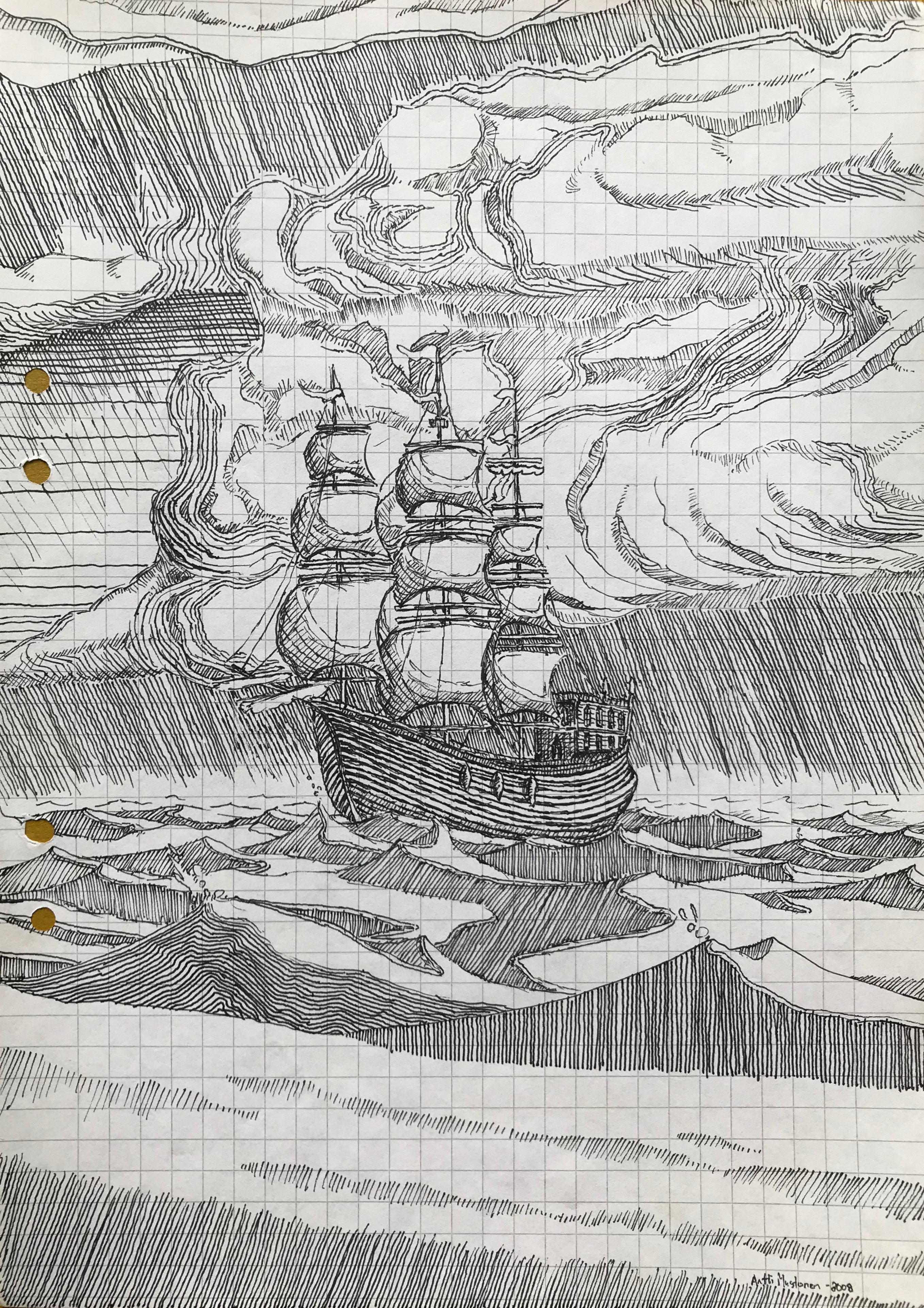 Pieni laiva, 2013, A4 piirrustuspaperi, hinta neuvoteltavissa.