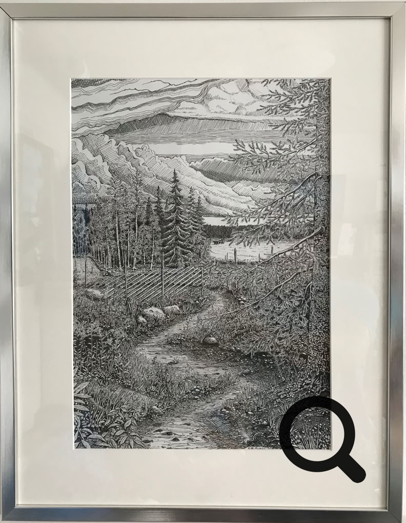 (Kuvassa heijastuksia lasin vuoksi, lähempi kuva työstä) 600€